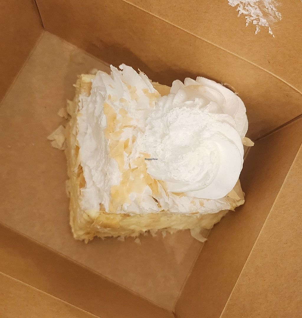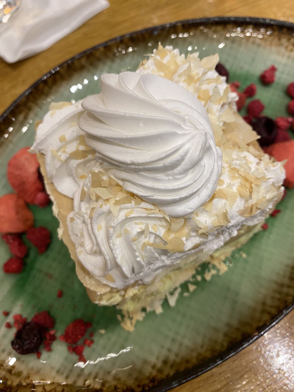 Tasty and fresh food. Cream cake tastes like a cloud.