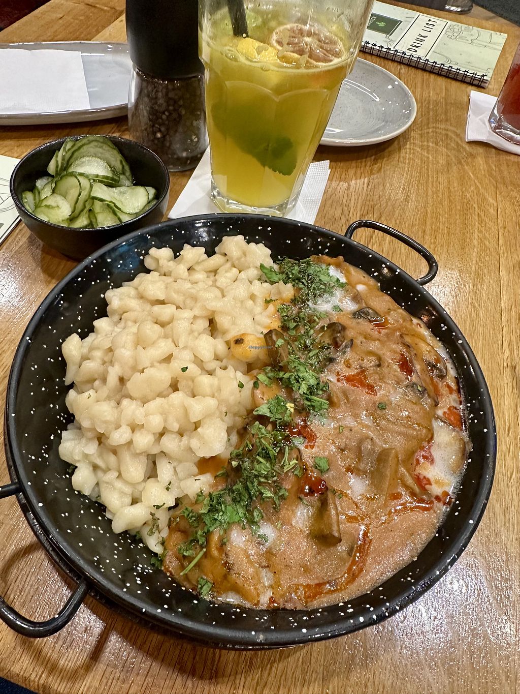 Loved how many options they had. Was especially excited to try Hungarian classics that are usually meat. Had the vegan goulash which was yum and hearty. Had a the pea protein/paprika pancake as well which was delicious. Would recommend for plant based eaters. Sometimes the service was a tad slow hence not a 5/5.