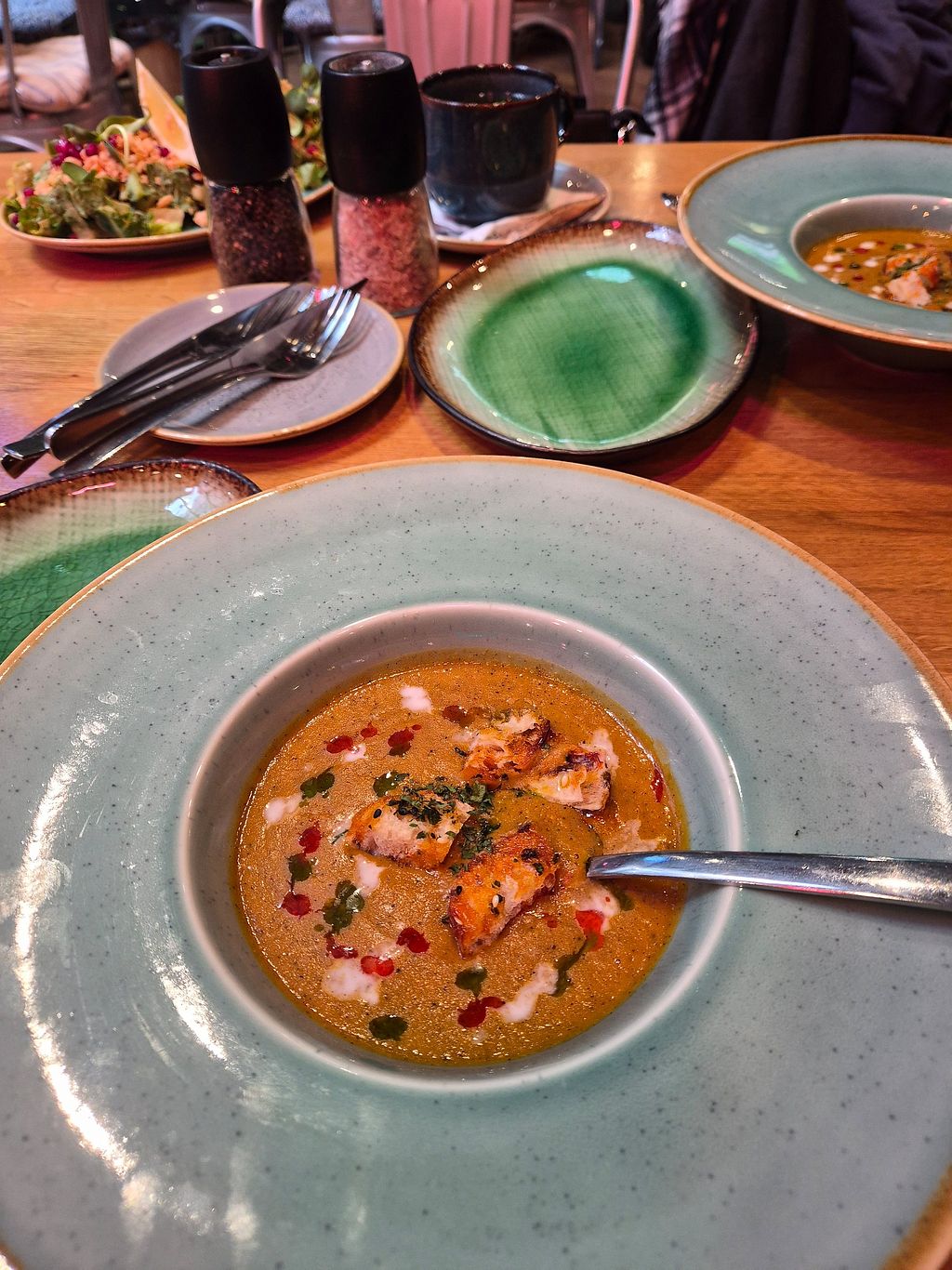 I ate in this restaurant twice, the actual restaurant is very nice, friendly staff, and a good selection on the menu. I just found that my dishes didn’t have that much flavour.