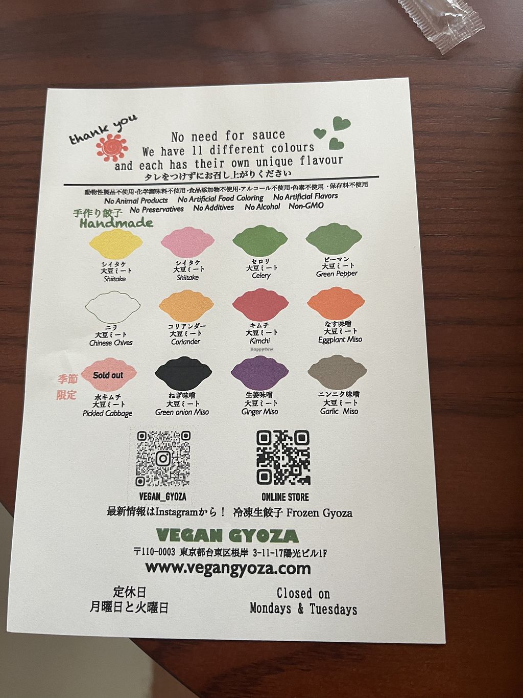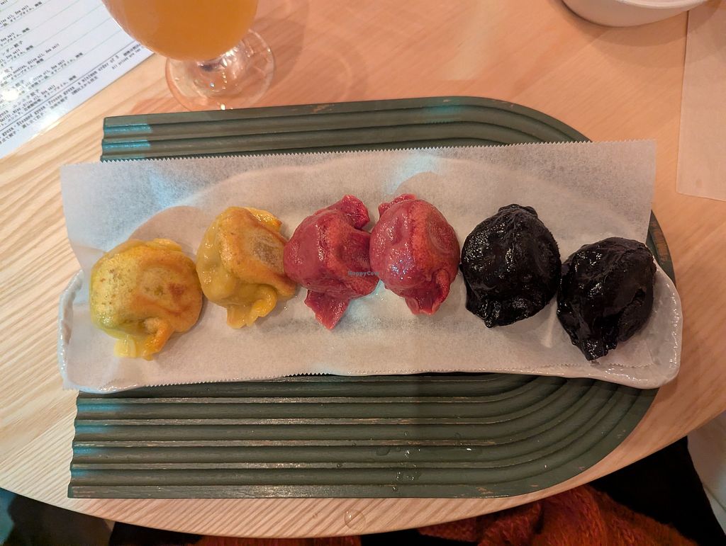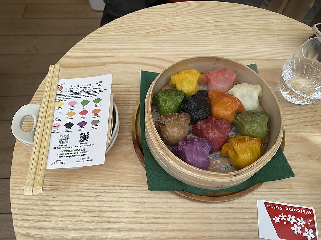 Delicious gyoza, everything was vegan so no need to pick round the menu - we could try everything - and did! They do 11 different flavours of gyoza, all different bright colours, so we had the set with all 11! Nice craft beer to wash them down. Lovely staff - English speaking and very helpful.