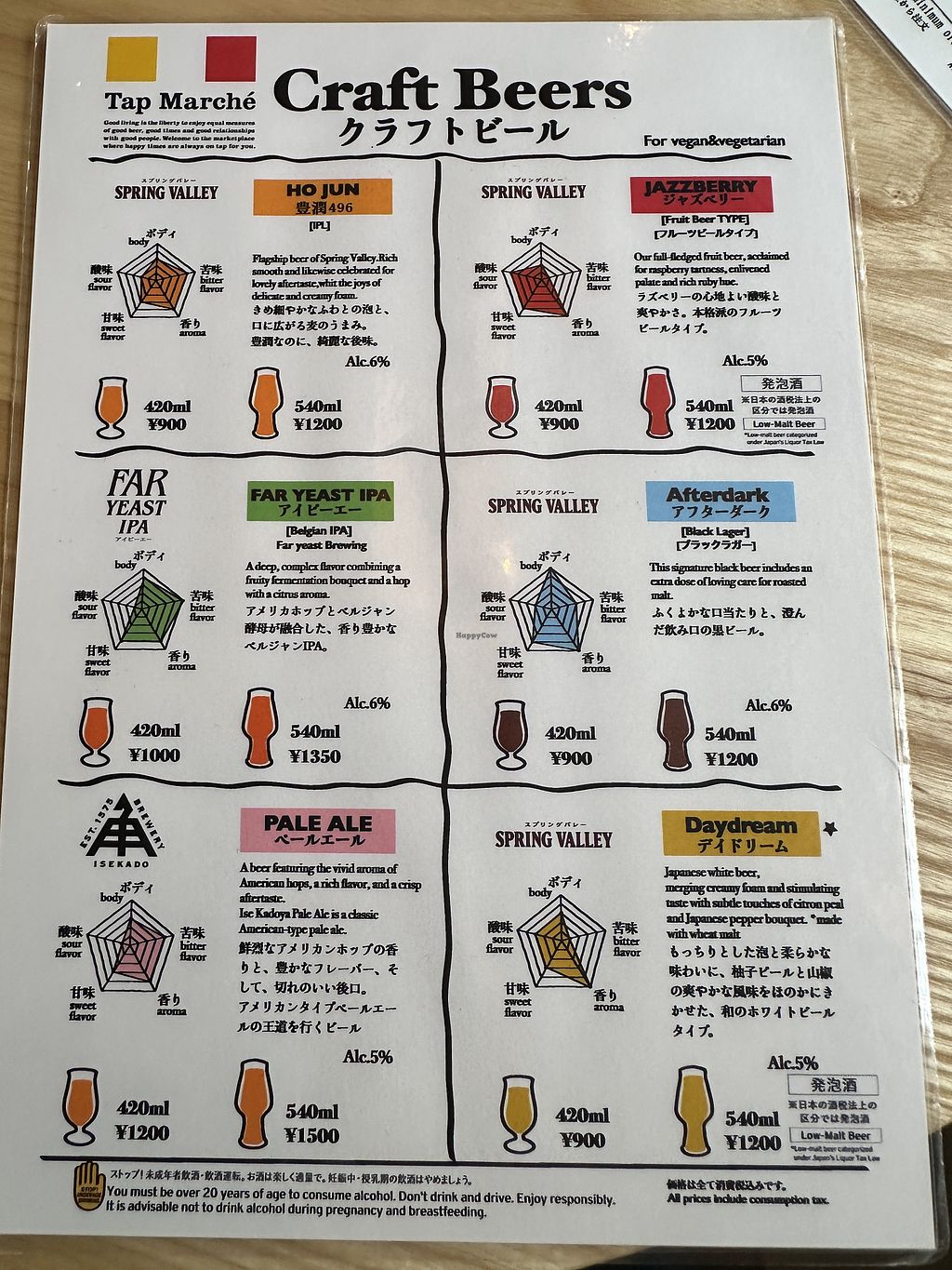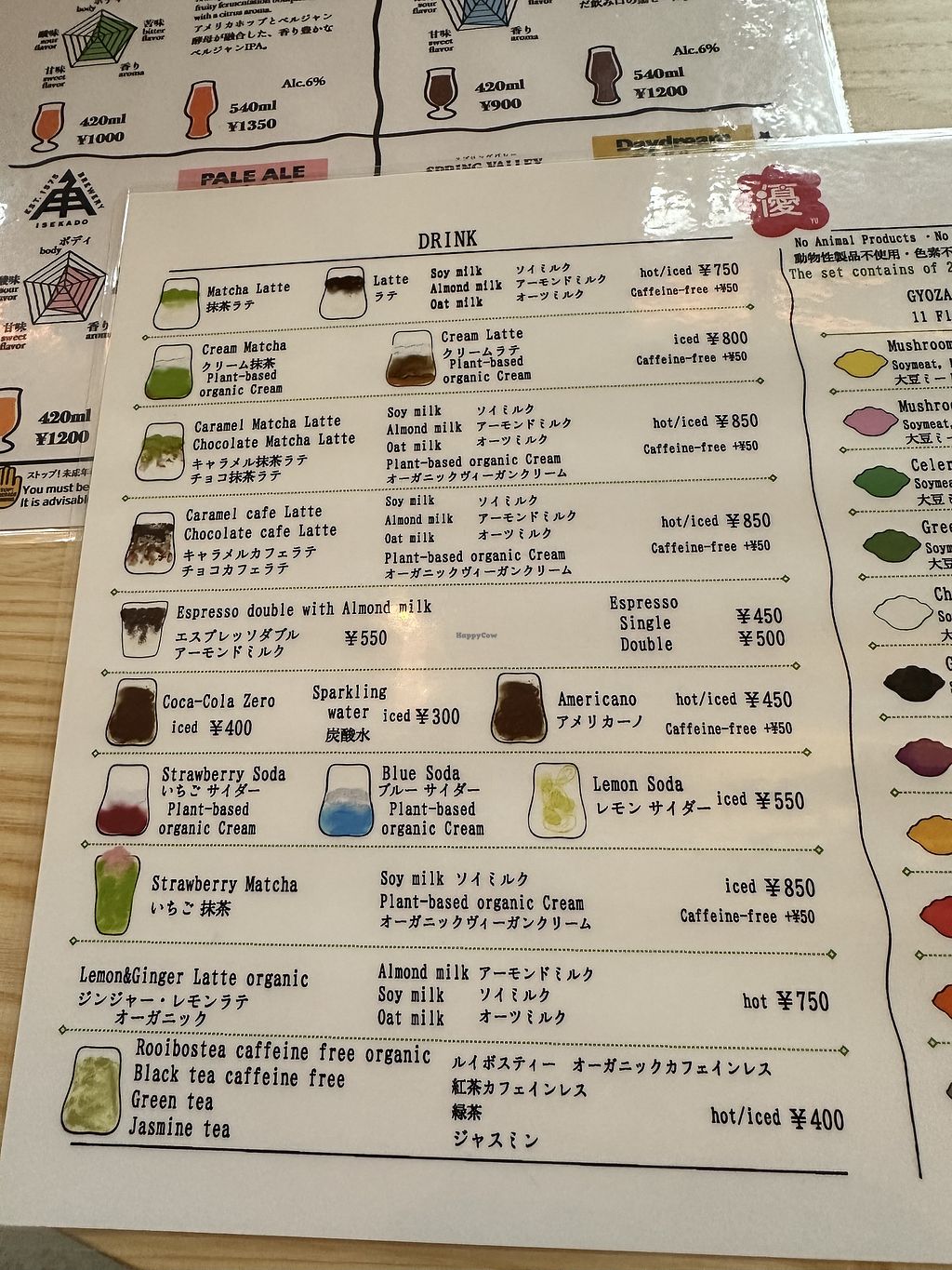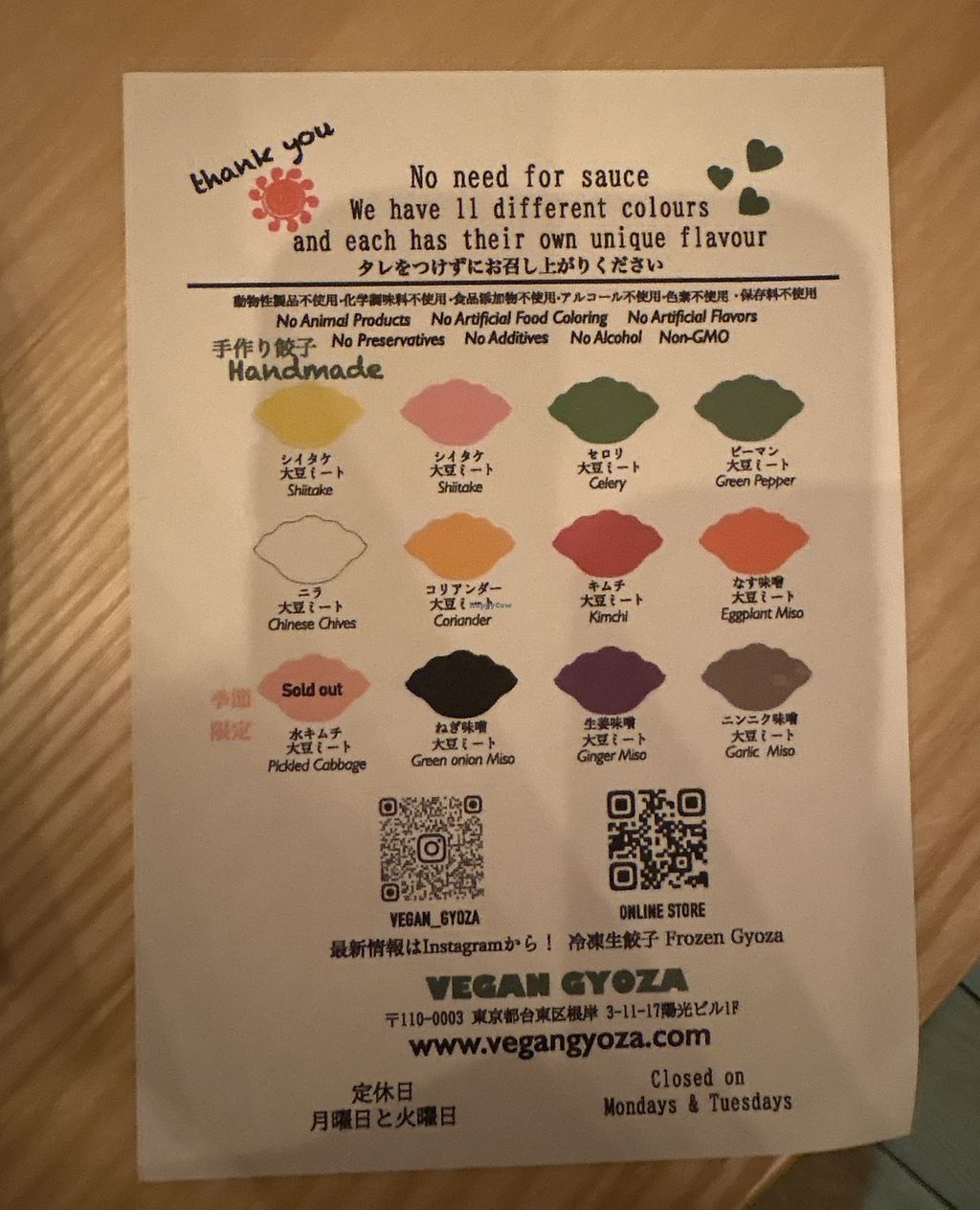 Delicious gyoza, everything was vegan so no need to pick round the menu - we could try everything - and did! They do 11 different flavours of gyoza, all different bright colours, so we had the set with all 11! Nice craft beer to wash them down. Lovely staff - English speaking and very helpful.