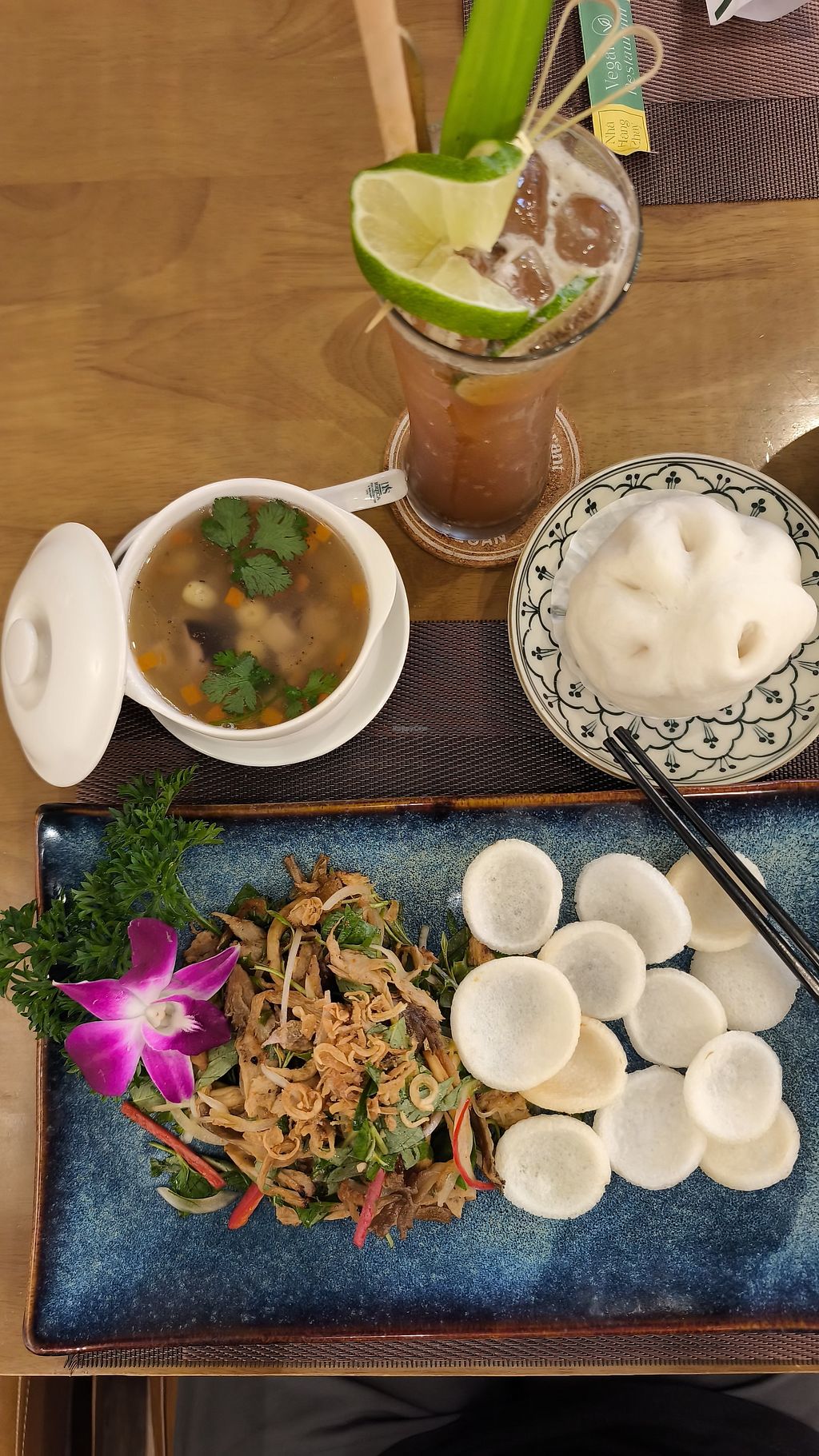 Had the strawberry tea, braised vegan fish in clay pot, Vietnamese pyramid rice dumpling and vegan flan pudding for desert. All were absolutely delicious and only cost 155k, very cheap and can get a full meal for much cheaper still but this was well worth it!