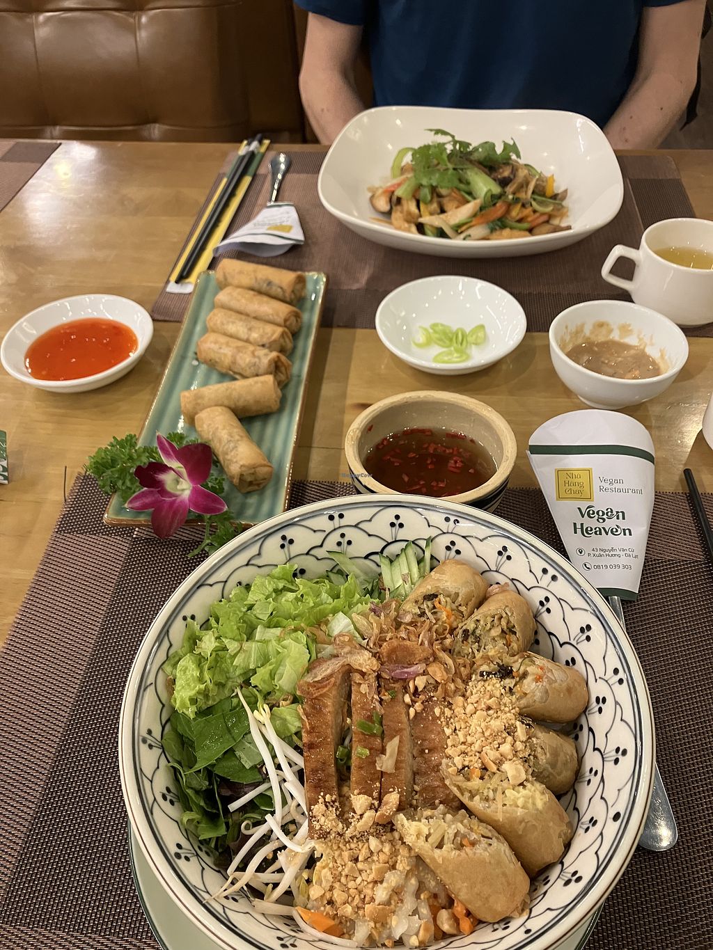 We stumbled on this fully vegan restaurant. We had the breakfast deal of a specific pho with a drink for 59K. The pho was really tasty! We want to come back for dinner and try the other options