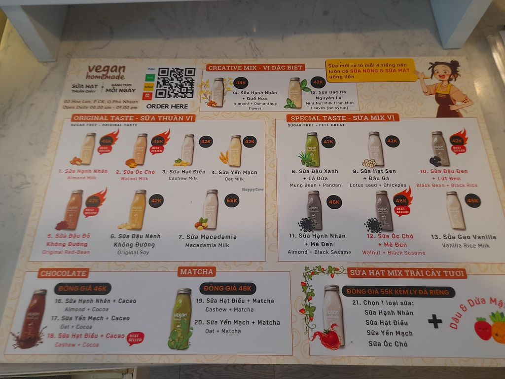November 2023: Took a scooter ride to get to this shop for breakfast - not realising it is take away only! At the time they had just fresh nut milks and some little raw cheesecakes so we got some and took them to a nearby park to eat. The staff were so attentive and it seems that they haven't been open long. They packed our things so nicely and gave us cups of ice to keep the milk cold - I'm sure they are expanding and if you live in Saigon the milk is definitely worth getting on the regular!