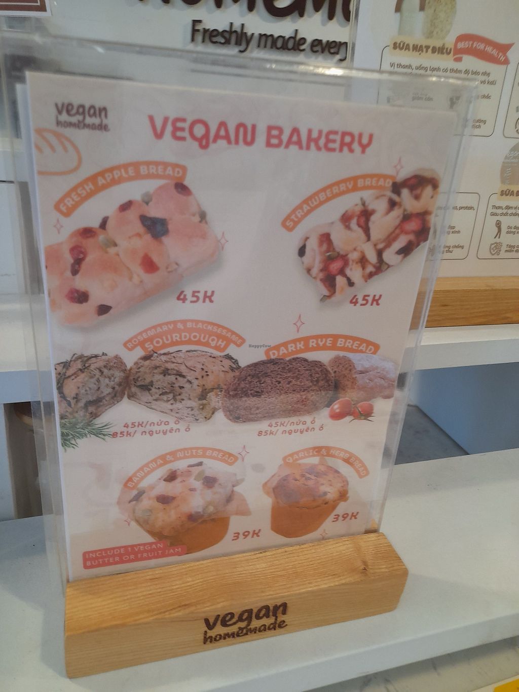 Little bakery that serves lots of different types of plant based milks. Little deserts and small bread loafs with lots of different spread options to eat in or take away. Made fresh daily and very nice people. English menu, but will probably have to communicate through pointing if you don’t speak Vietnamese. #Veganuary