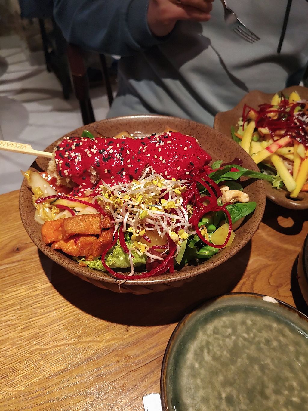 Wide range of vegan Asian food. The dishes are tasty and the small portions mean that you can put together your favorites flexibly according to your wishes. Unfortunately, you always had to wait quite a long time for staff.