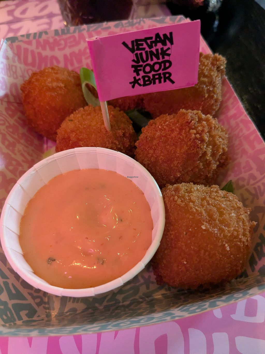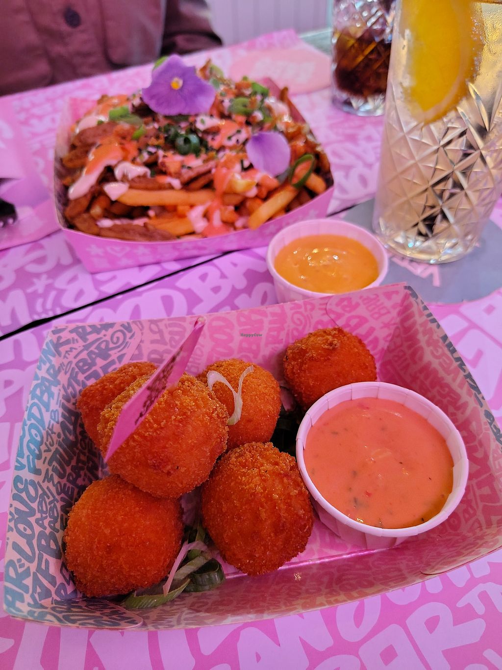 Vegan fast food bars est. 2017, one of several outlets. Menu offers stacked vegan burgers, hot dogs, bitterballen, sandwiches, chickn nuggets, faux fish, ice cream, onion rings, and loaded fries. Adds color to the buns and mayo. Cashless. No reservations. Open Mon-Thu 12:00-22:00, Fri-Sat 12:00-23:00, Sun 12:00-22:00.