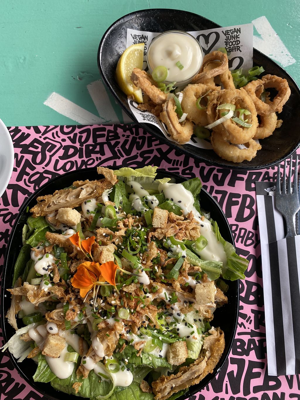 Chicken tenders, beef, cheese, lettuce, sauce, jalapeño slices: it’s a…