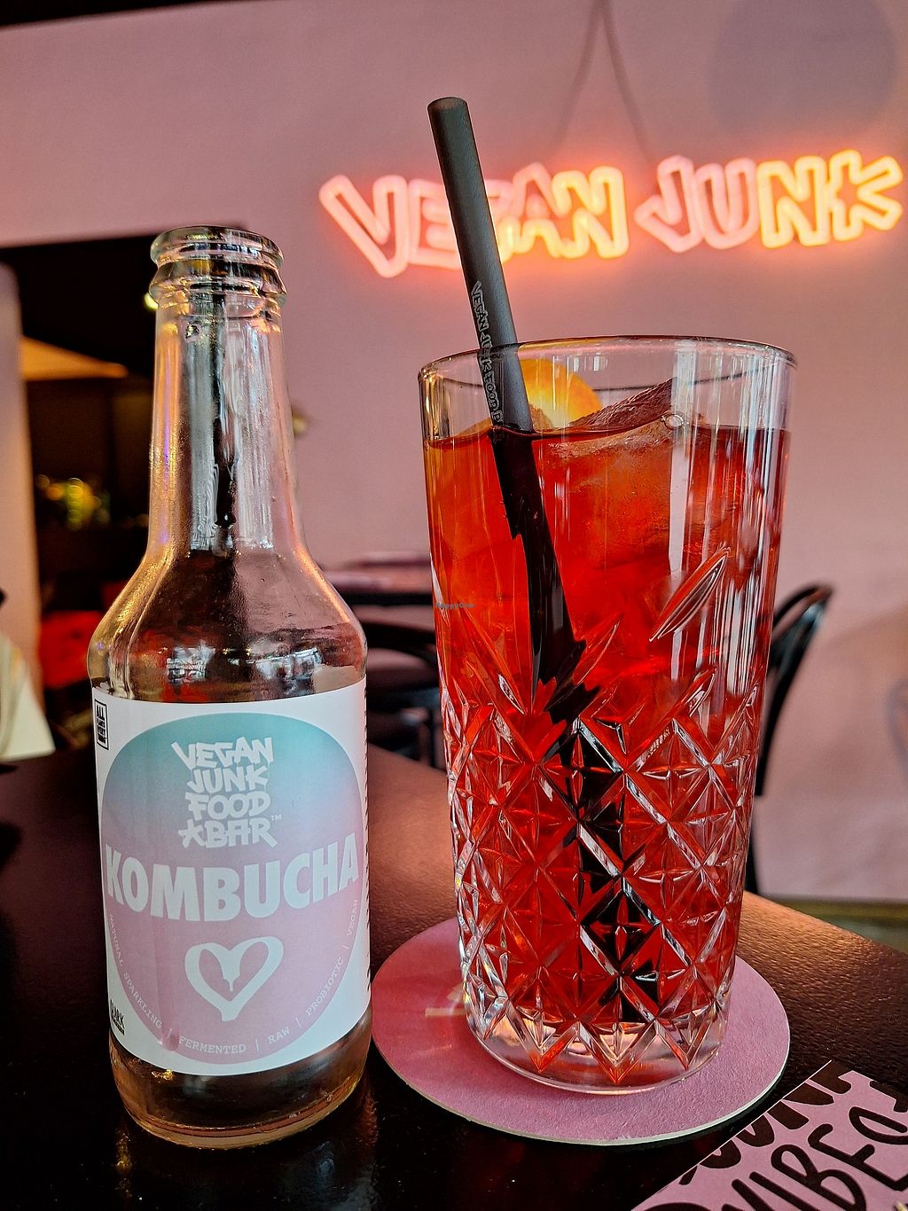The vegan junk food bar is a great place if you enjoy junk food. I generally don't like junk food as much but I wanted to try it anyway. I went there with a few non vegan friends and everyone liked the food. I ordered the vegan shrimps and they tasted very authentic and were delicious. After that I had the VJFB Beastie with a side of sweet potato fries and the "blue daddy sauce". I also had the "tipsy Unicorn" as a drink. All in all was it a good experience. The restaurant also has a gender neutral toilet besides a toilet for women.