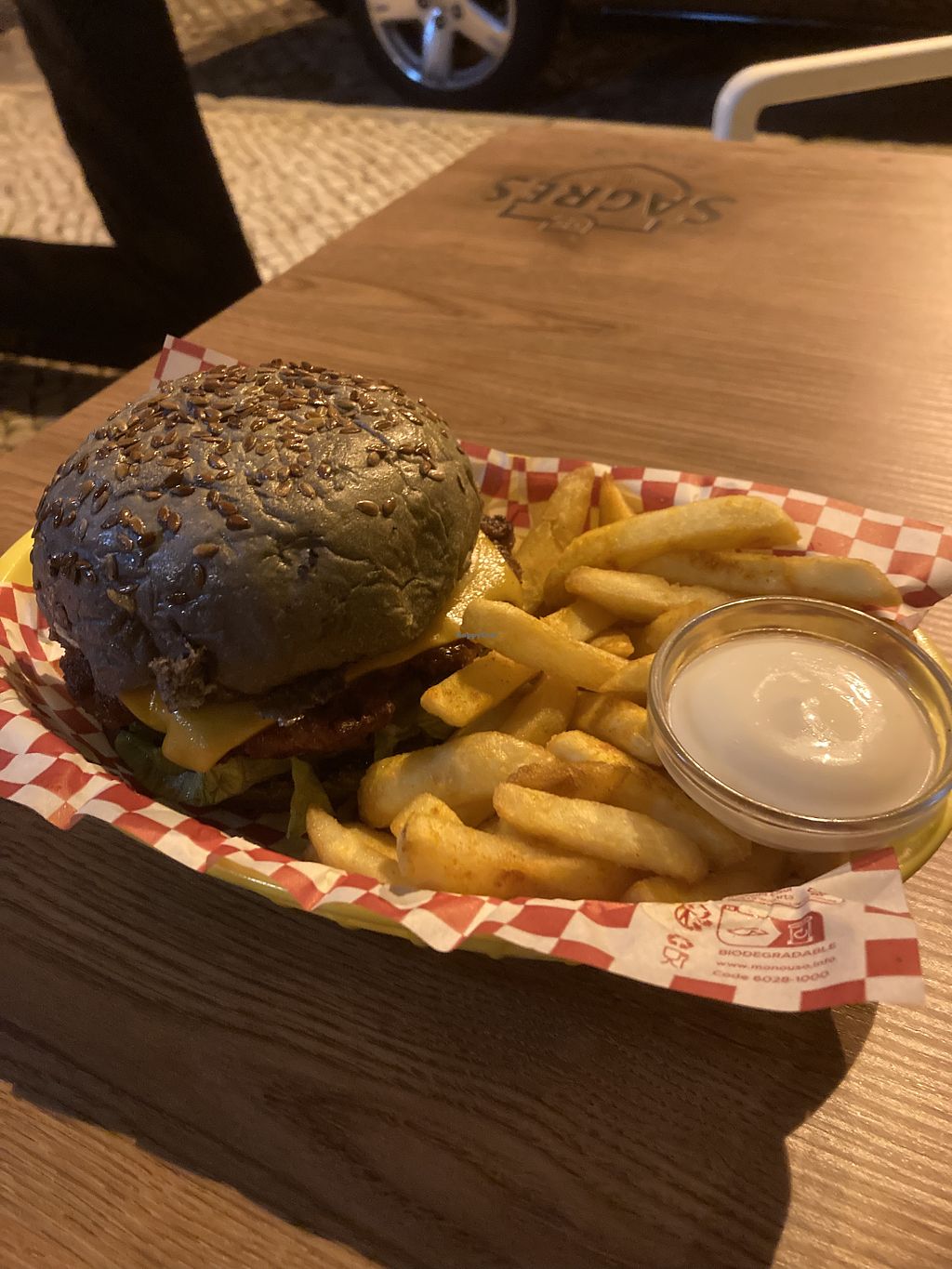 I had the Beyond Burger with good fries and spicy mayonaise.