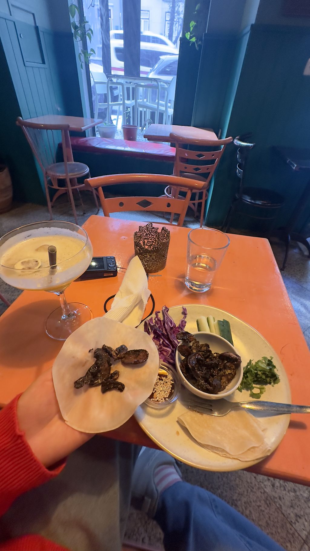 I loved the food, I got the Chinese style pancakes, but they are actually more like tacos with mushrooms but they are soooo good! Definitely recommend and price I would say it’s okay, less than 20 euros for both my food and my cocktail!