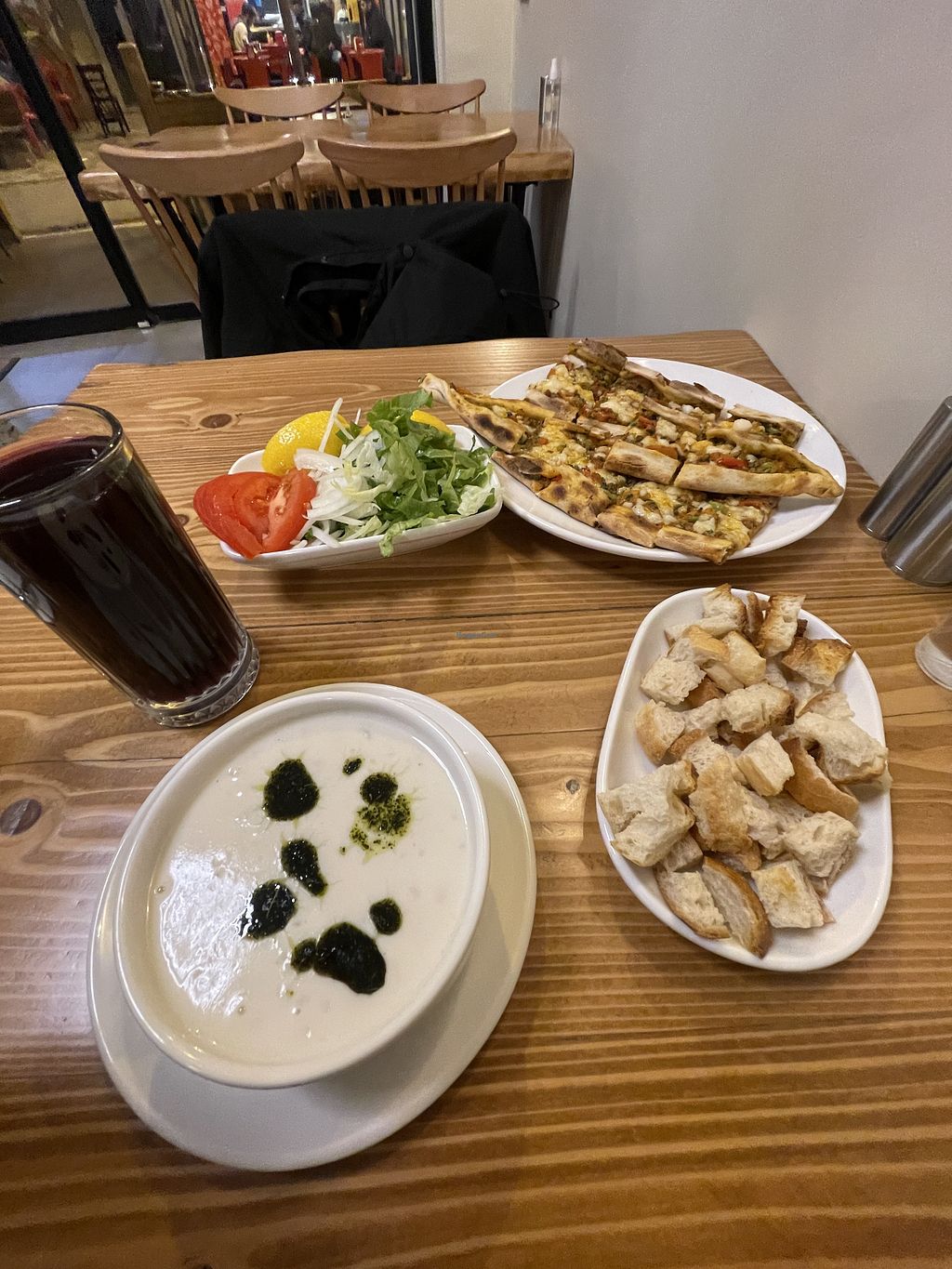 woow, this was so good! I had the Lacmanchu & a pide with soymeat and cheese. Since I read in one review that the pides are underwhelming I almost did not order it. I'm so glad I still did, it was sooo delicious! I also tried the Ayran, which I personally did not like but it tastes pretty much what I remember real Ayran tasting like 😊