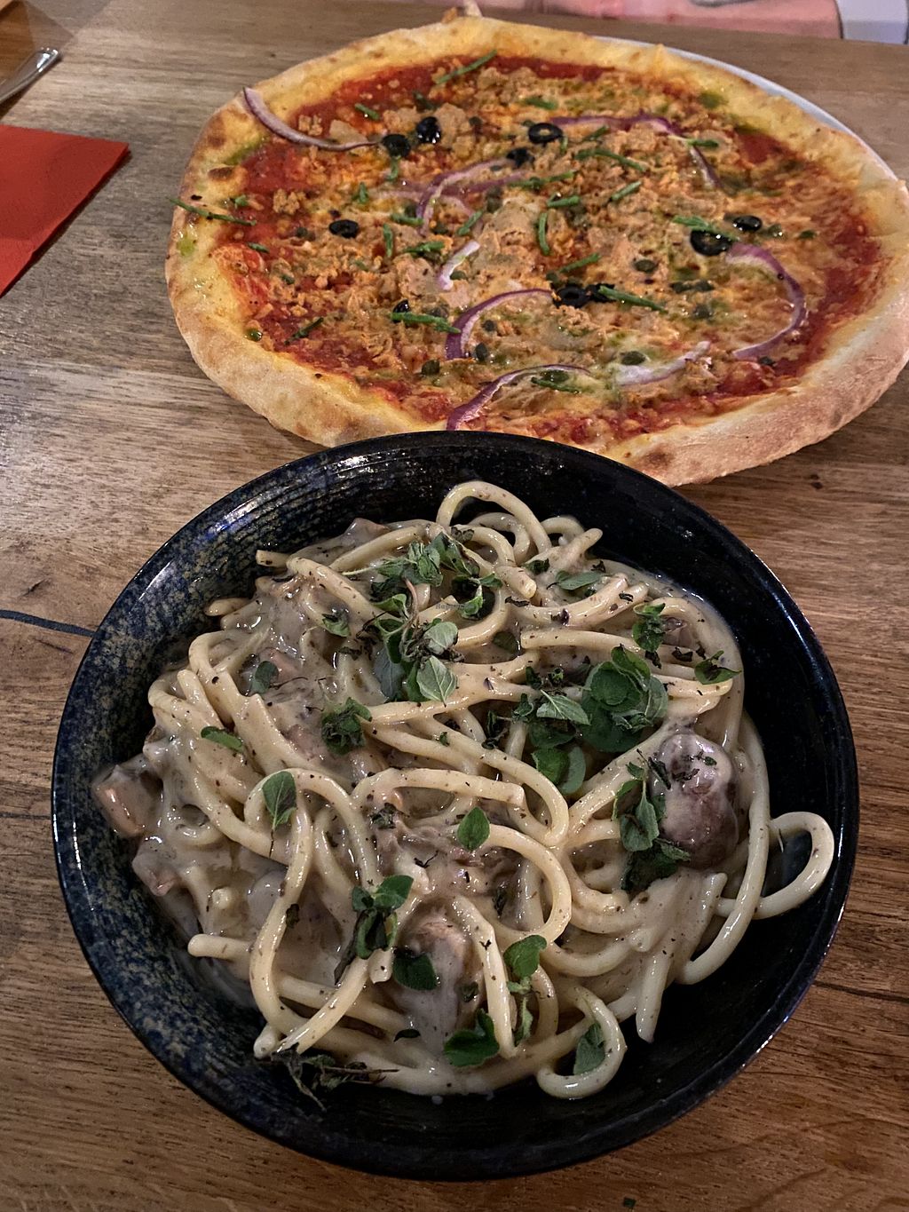 The Vegan Pizza Bar has varies starters, pizza’s, pasta’s and desserts. There’s so much choice, you have to go back af least a couple times. Their home made secret recipee vegan cheese tastes amazing! Every pizza is very different but oh so delicious! I have ordered the tartufo e fungi pasta the last 3 times because I love it so much! The waiter is very kind and truely knows his stuff. It feels very cosy and homey to eat here. No side-job-student is found here. 10/10 recommend😄