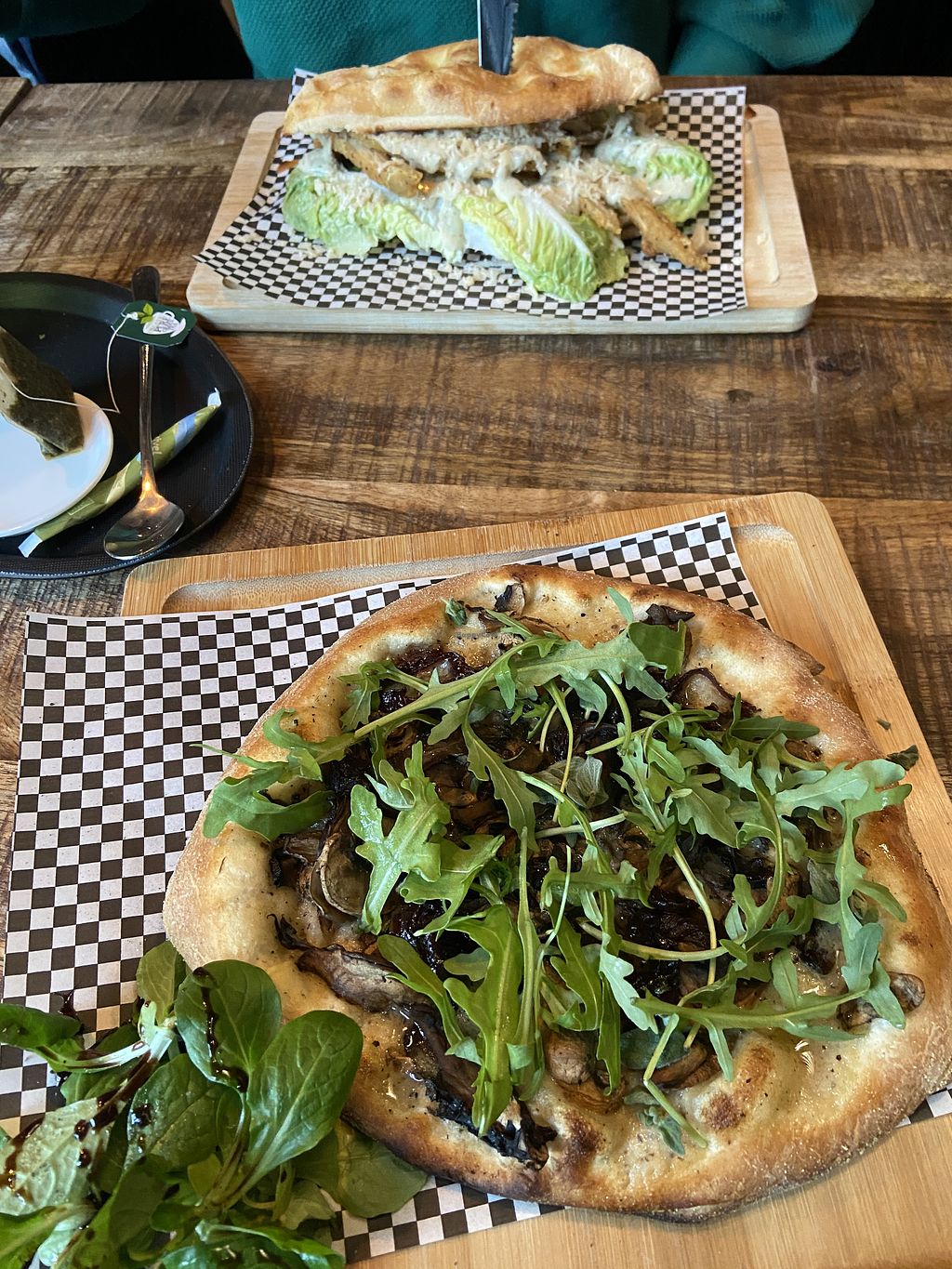 Caesar sandwich and half-a-shroom pizzette: both very good