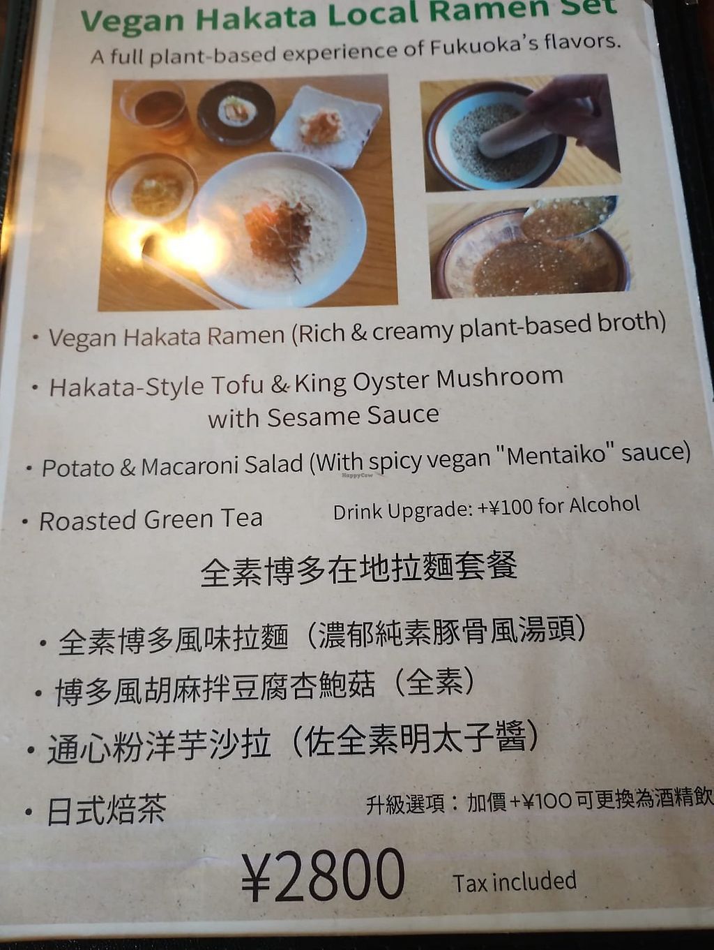 A hidden place, fully vegan and great service! Recommend to any vegan looking for traditional hakata ramen experience :)!