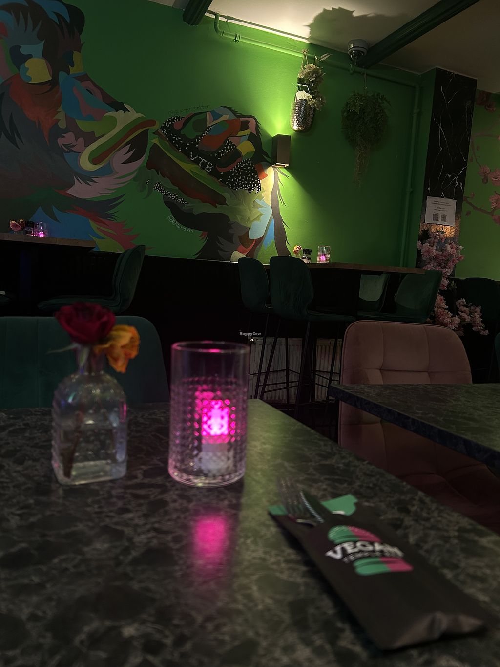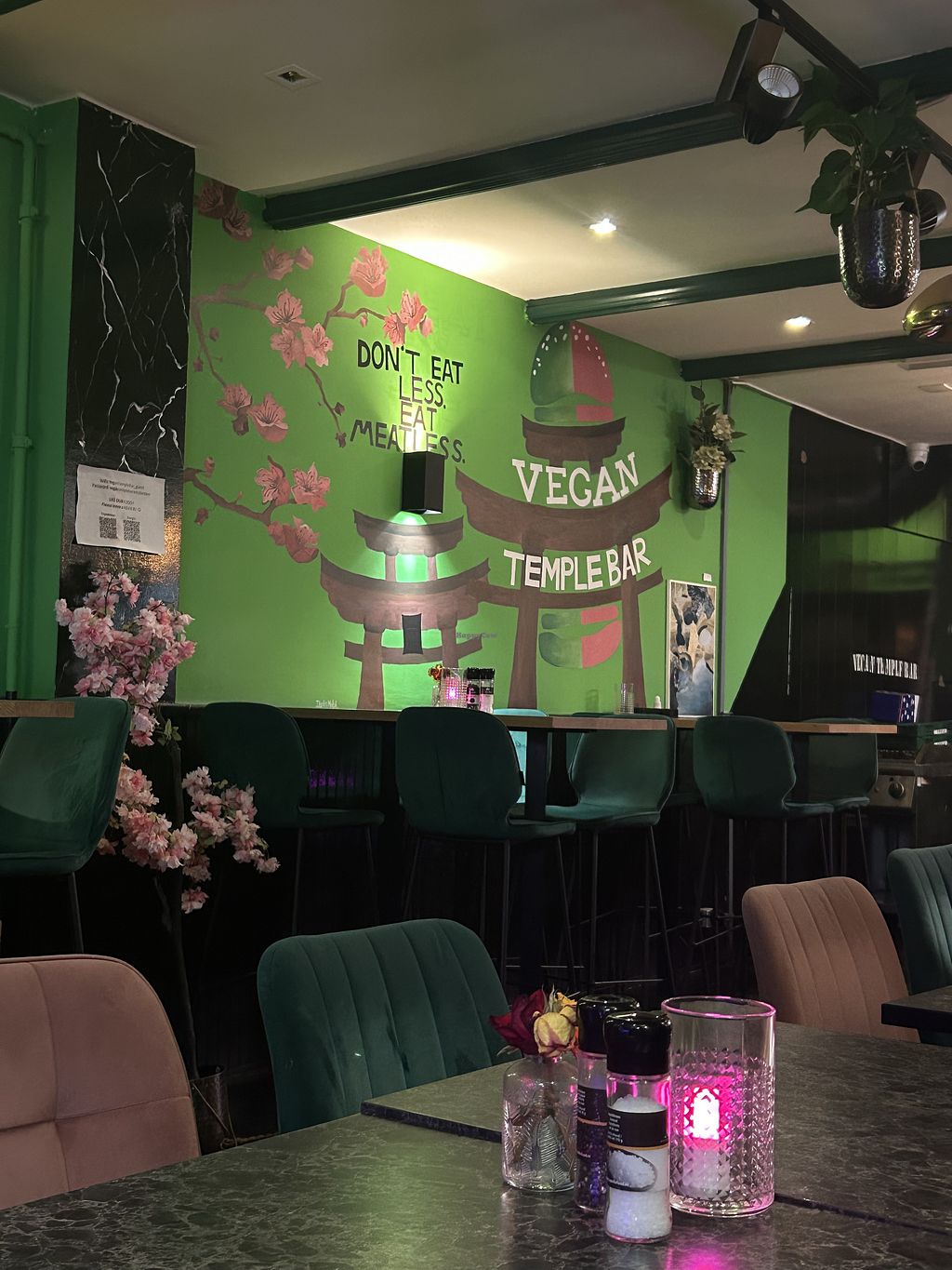 Everything is vegan, which is great. The restaurant looks nice and the staff is friendly. The food is okay, nothing special but fine for a casual meal. Overall, a pleasant place with a good vibe.