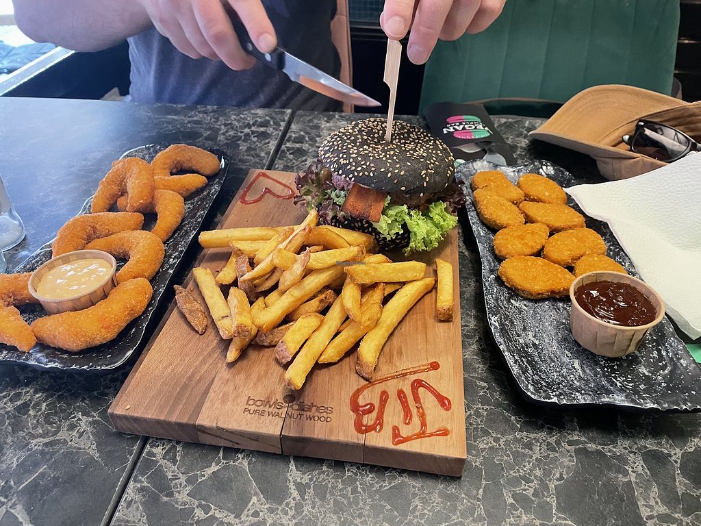 Vegan burger restaurant opened May 2021 in downtown. Serves vegan burgers, rolls, fries, and desserts. Open Mon-Sun 12:00-23:00.