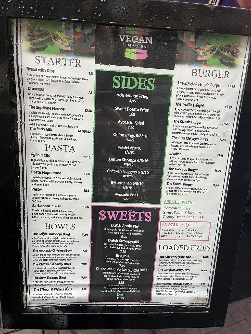 We just got to the city and was looking for a great vegan place and we hit the jackpot! We got the sampler appetizer, now I understand the hype about Bitterballen. I had the "salmon" bowl, it was just like a sushi roll in bowl, delicious! And my hubby picked one of the many burger options. Overall great food experience in Amsterdam!