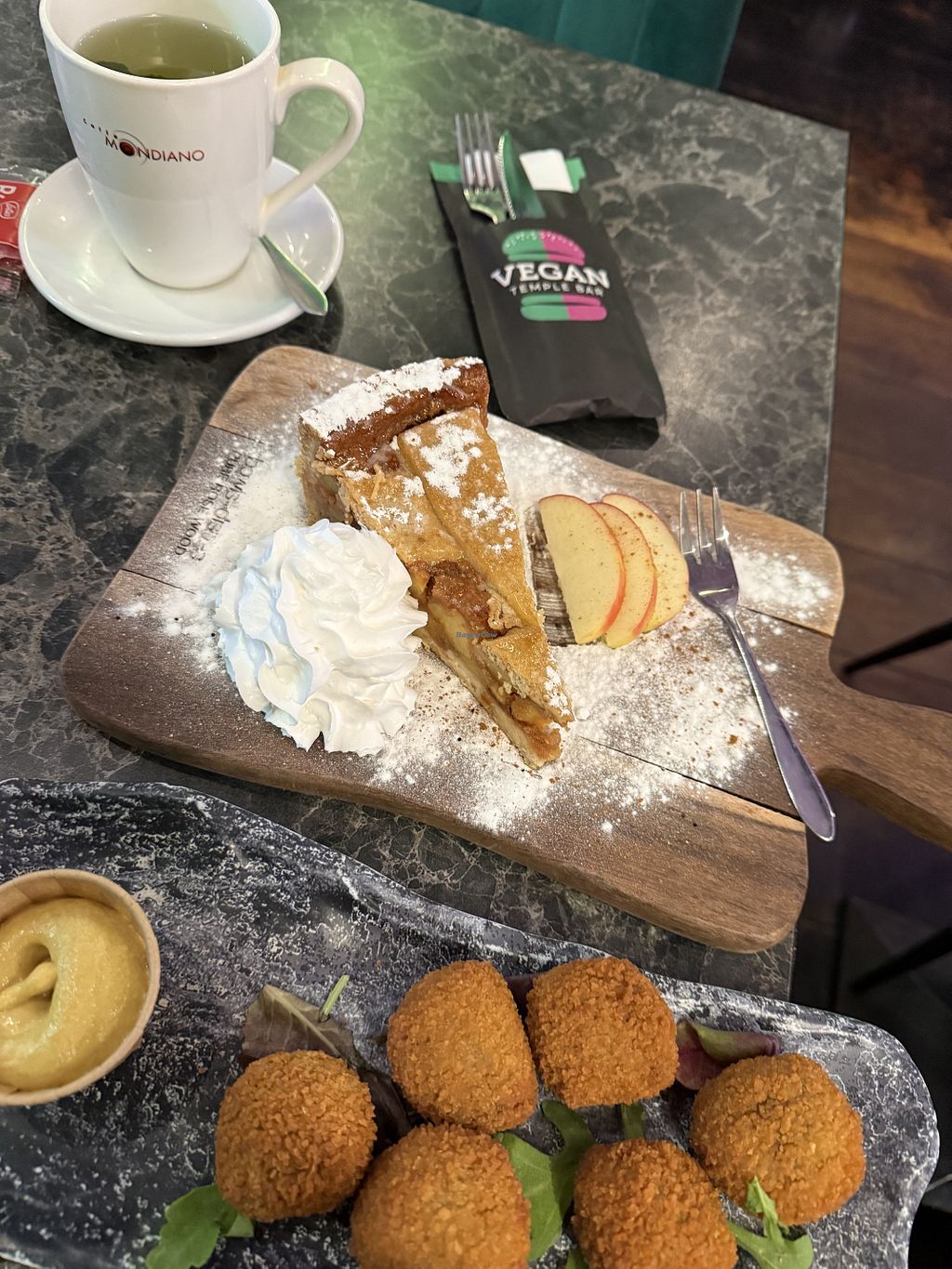 Ordered Dutch “bitterballen” and Apple Pie as a late lunch. It was so delicious!!