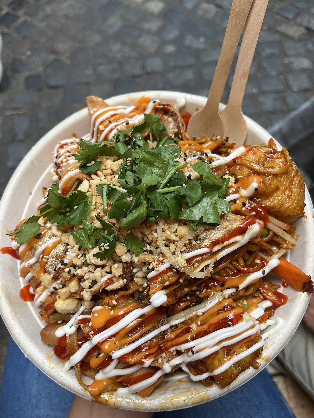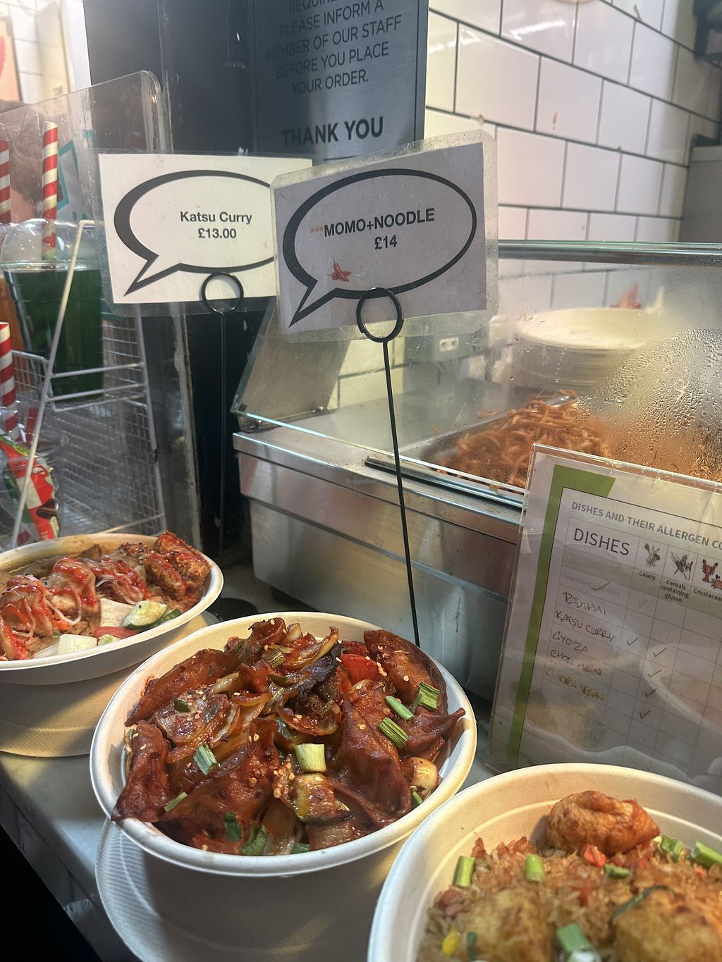 Really nice food! I got tofu pad Thai and it was so good - the tofu was amazing!!😄It was reasonably priced considering the generous portion size, and it's always great to have specifically vegan food stands in places like Camden market. However, I do agree with the other reviews here that there could definitely have been more veg in the dish! The dish was still super flavourful though, plus the staff were really friendly, and all the menu items were very clearly labelled, with allergens displayed for each of them :)