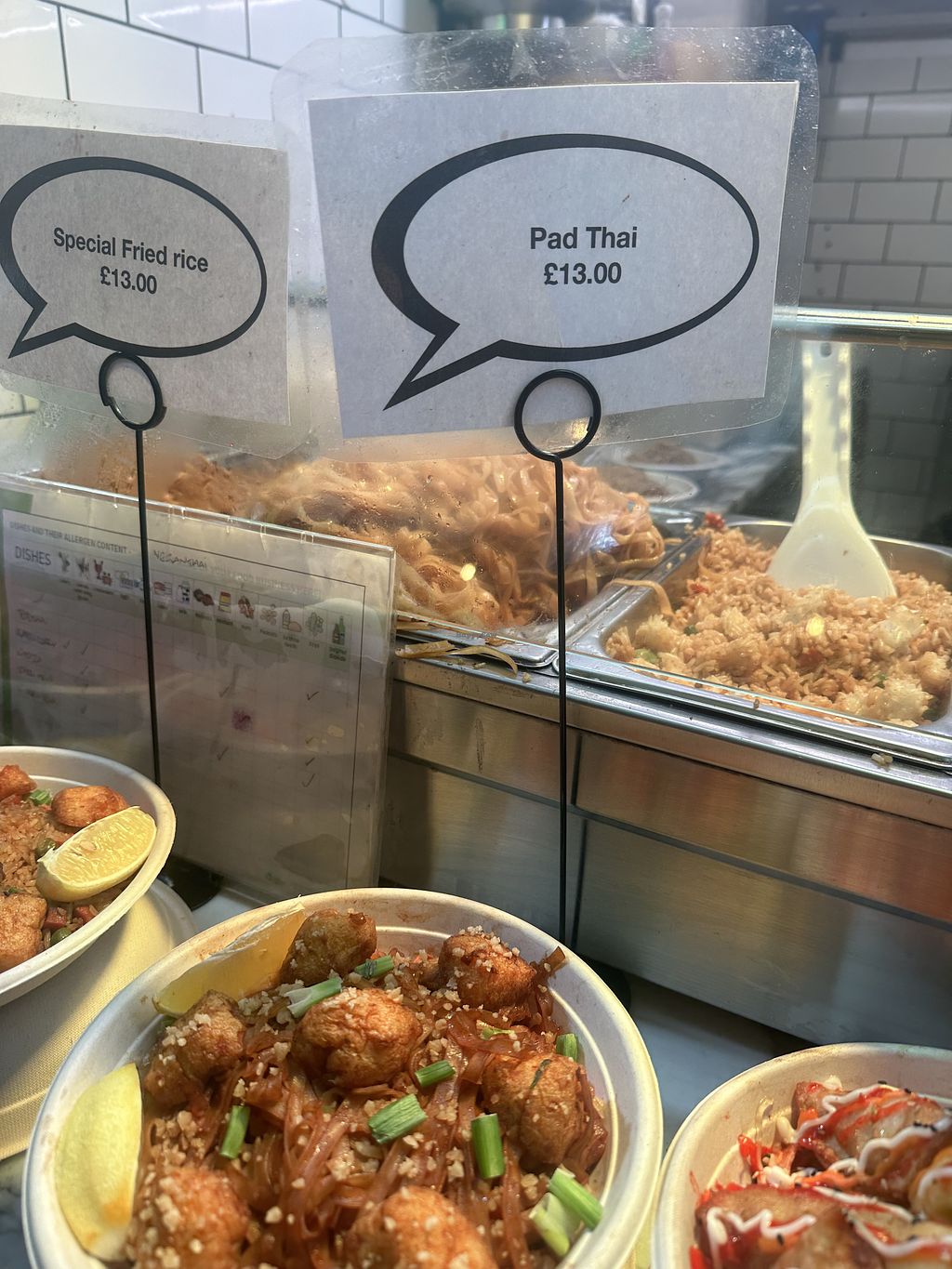 I visited here whilst looking for food in Camden Market and the dish I had was amazing. I went for the pad thai with mild spice and vegan chicken strips and it was so flavoursome. The presentation was gorgeous as well considering it was street food - the man made it all fresh and from scratch! It cost around £10 but it was worth it.
