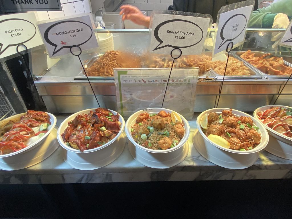 Always busy in Camden was nice to find this stall 100% good choice clearly marked with plates on display and prices