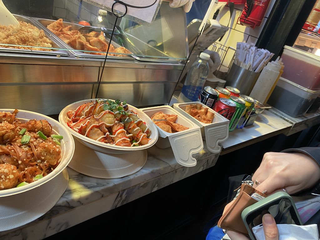 Got a mixed plate with spring rolls, dumplings and some kind of chicken substitute. Everything was delicious and the noodles were very creamy and nice however the portion size was way too big. The dumplings was absolutely amazing!