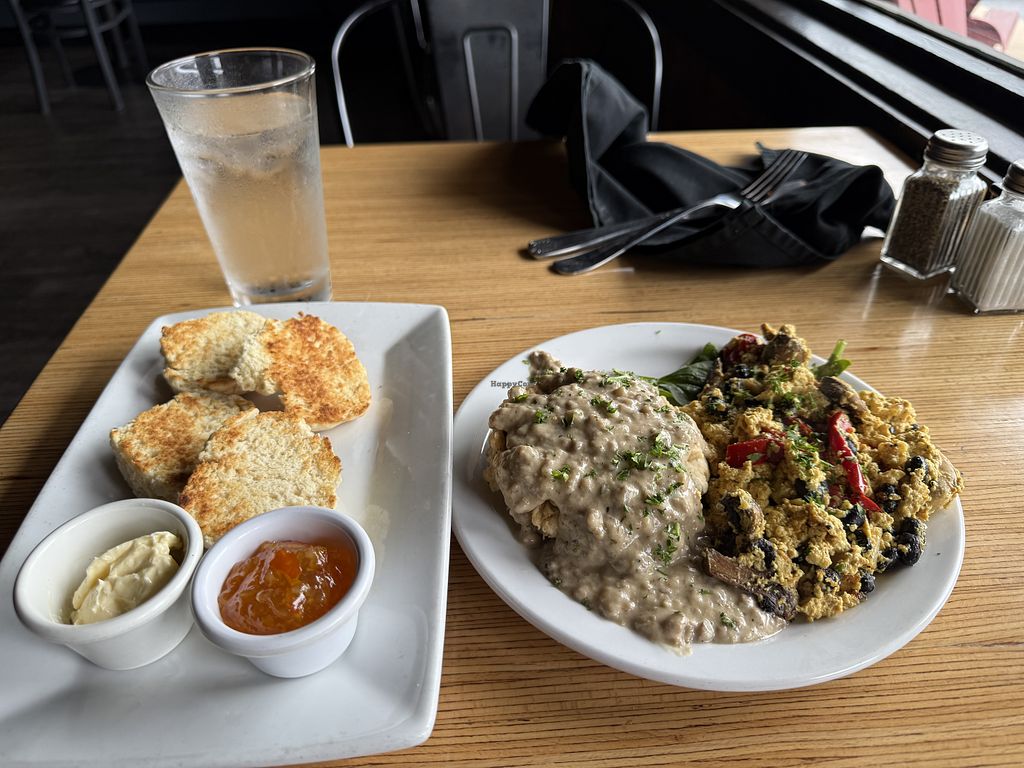 I replaced the potatoes with scrambled tofu and added a side of biscuits. The combination is 5 stars.
