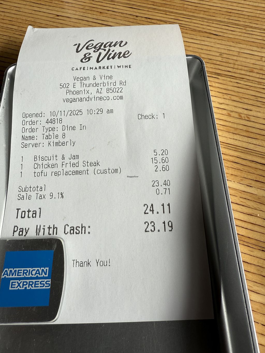 We have been going to vegan and vine for a while now. A couple weeks ago we read the board showing kids eat free on Thursday's. So we took the kids two weeks ago on a Thursday and sure enough it was free for them. We thought wow that’s amazing. So we thought this morning, also a Thursday. We are and when the check came noticed the kids meals were on the bill. No biggie, so we said something to the server. He hadn’t heard of this so he contacted the owner (who was there last time we went and the kids ate free) the owner said “kids have never eater free”. So I mentioned the board which still says Thursday’s kids eat free. She then told him if it was in the board it was from a few weeks ago and I haven’t updated it. He sent her a picture of the board and she stopped responding to him. The kids did not eat free today, which would have been no big deal if it wasn’t advertised as so. We have enjoyed this place many many times, and because of the way this was handled we will not be going back. The first time we saw kids eat free was and of march. Then we went back April 10th they are free and went back today and she acted like it wasn’t a thing. April 10th there were a few tables with kids eating free. It appears the owner indulges in the vine aspect of the business often. Dishonesty lost you very faithful customers. That picture was taken today