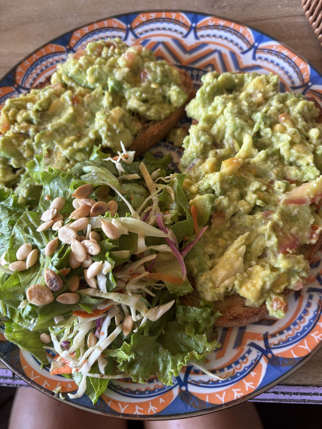 Pros: Lots of vegan options, bug portions , Plant milks for shakes, coffee etc , Beautiful garden and view