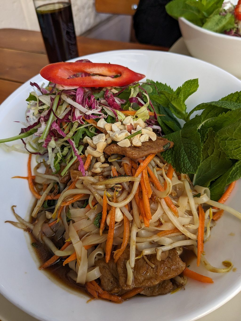 I had the main dish of the day, fried noodles with vegetables and salad, and chose tofu for the add-on. It cost only €7.50 and the portion was really big! I was served fast and the meal tasted awesome. A clear recommendation!