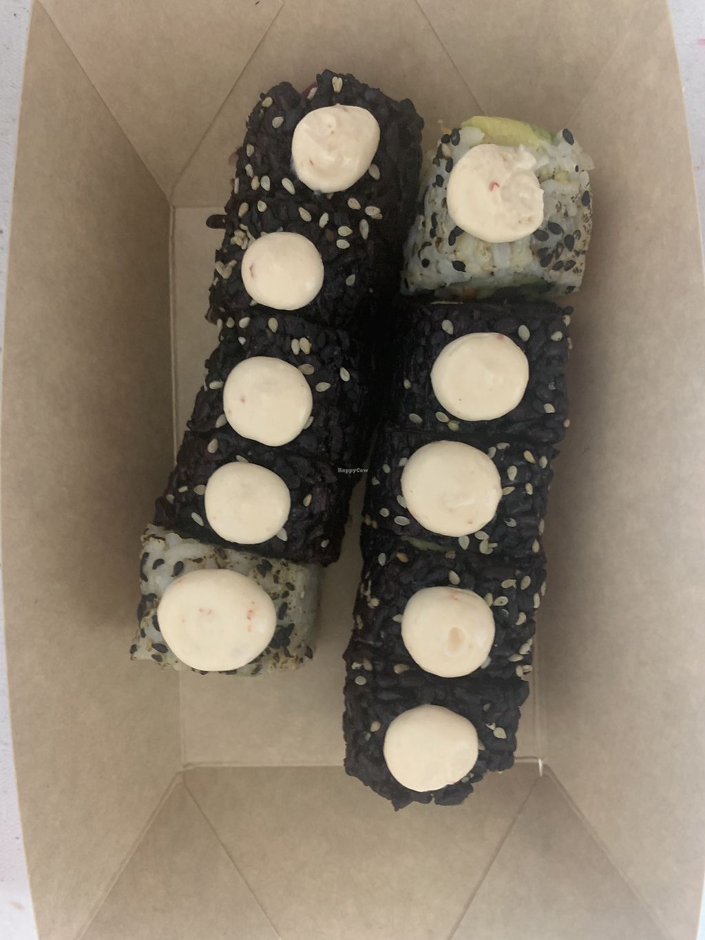 Super cute vegan sushi store with lots of different sushi. Also starters (edamame, gyoza) and desserts. They do not use mock meat/fish instead they create their own variants with fresh, natural and not highly processed ingredients - oishii 🤤.