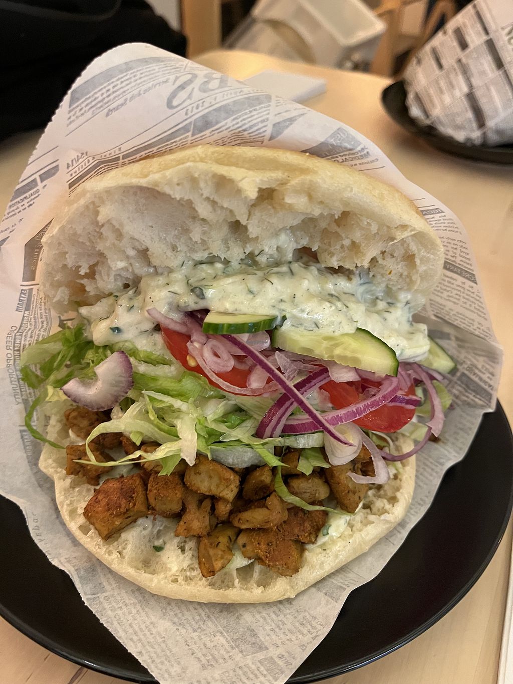 Last time I had a vegan gyros with tsatsiki and I loved it! They also offer vegan döner and burgers. It is open till 10 pm