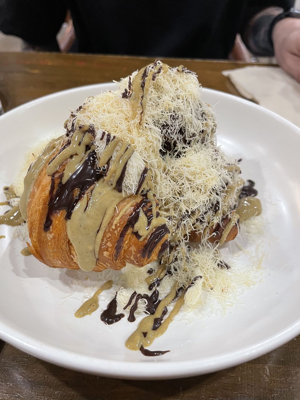 Read morecroissant was very generously drenched in sauces, and came with a choco filling. honestly couldn’t taste the pistachio but it was still delicious 😅 I’ve had better croissants for this price, but it’s worth a try if you have a pastry craving to satisfy!