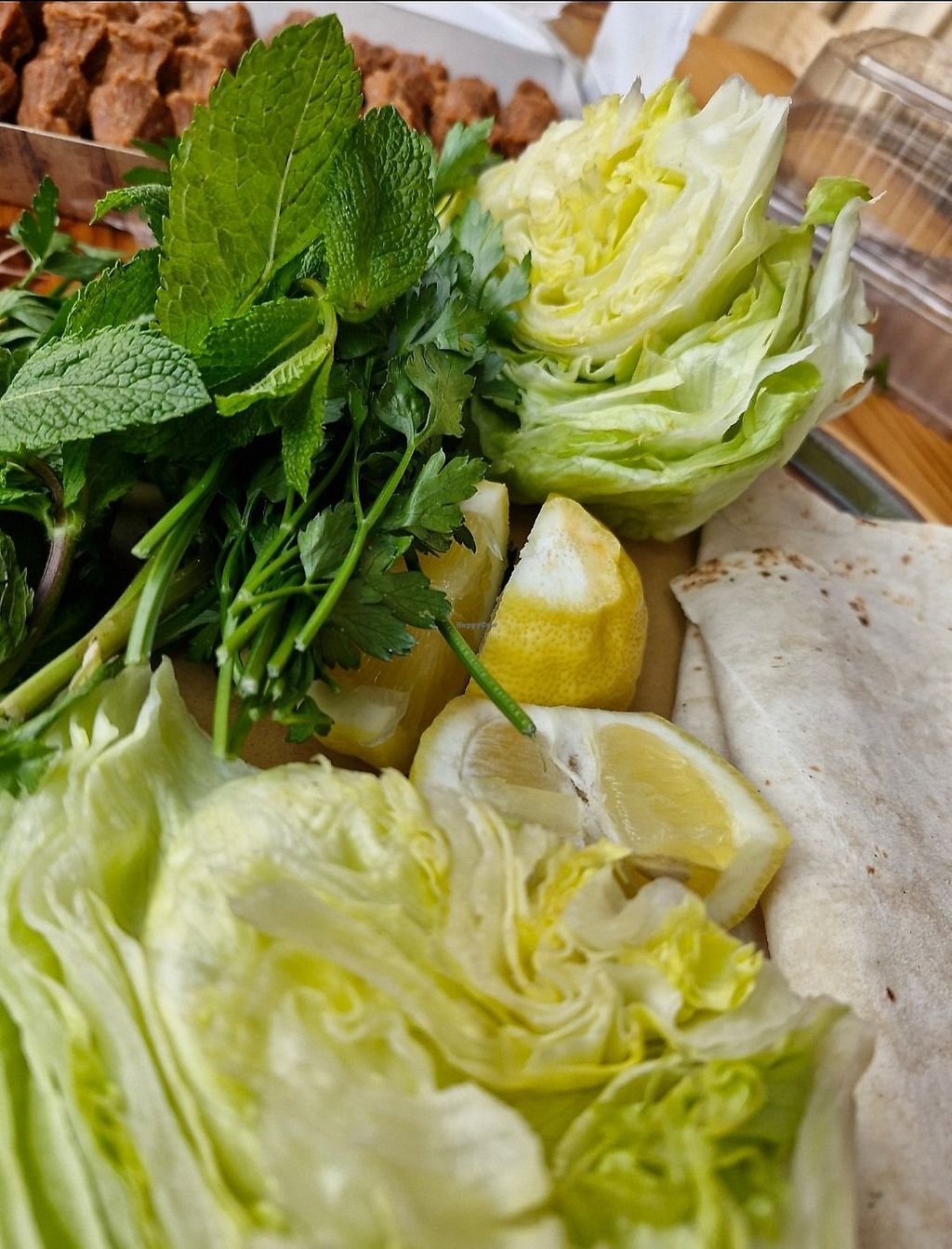 Sehr leckeres und frisches Essen das direkt vor den Augen zubereitet wird. Es gibt immer ein bisschen Çiğ Köfte zum probieren um die Wartezeit zu verkürzen. Das Baklava (türkische/arabische Spezialität) ist (natürlich) nicht vegan so wird es aber auch nicht angepriesen. Das Çiğ Köfte, sowie Dürüm ist komplett vegan. Man kriegt alles für das Çiğ Köfte, was man braucht zum Mitnehmen (Salat,Zitrone,Petersilie etc.) . Man kann aber auch vor Ort essen.