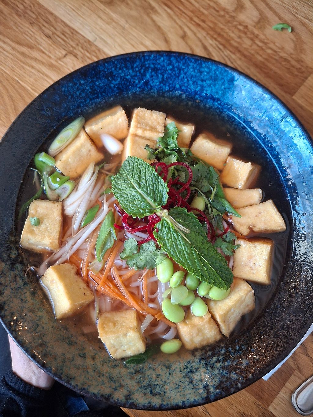 Read moreEs gibt eine gute Auswahl an veganen Optionen. Wir waren zunächst verwirrt, weil auf der Speisekarte angegeben ist, dass verschiedene Gerichte Ei oder Milch enthalten, aber das freundliche Personal bestätigte uns, dass das Restaurant jetzt zu 100% vegan ist. Die Wantan-Vorspeisen waren knusprig und lecker, aber die Saucen Beigabe war nichts Besonderes. Das Bun hatte eine schmackhafte Soße und eine gute Mischung aus Nudeln, Tofu und frischem Gemüse. Eine gute Option, wenn man in der Gegend ist.