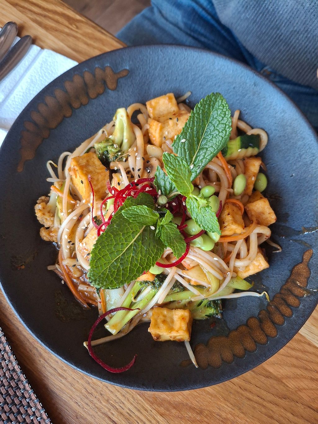Das Essen war richtig frisch und unglaublich lecker. Die vegane Ente war täuschend echt und hat uns vom Hocker gehauen.