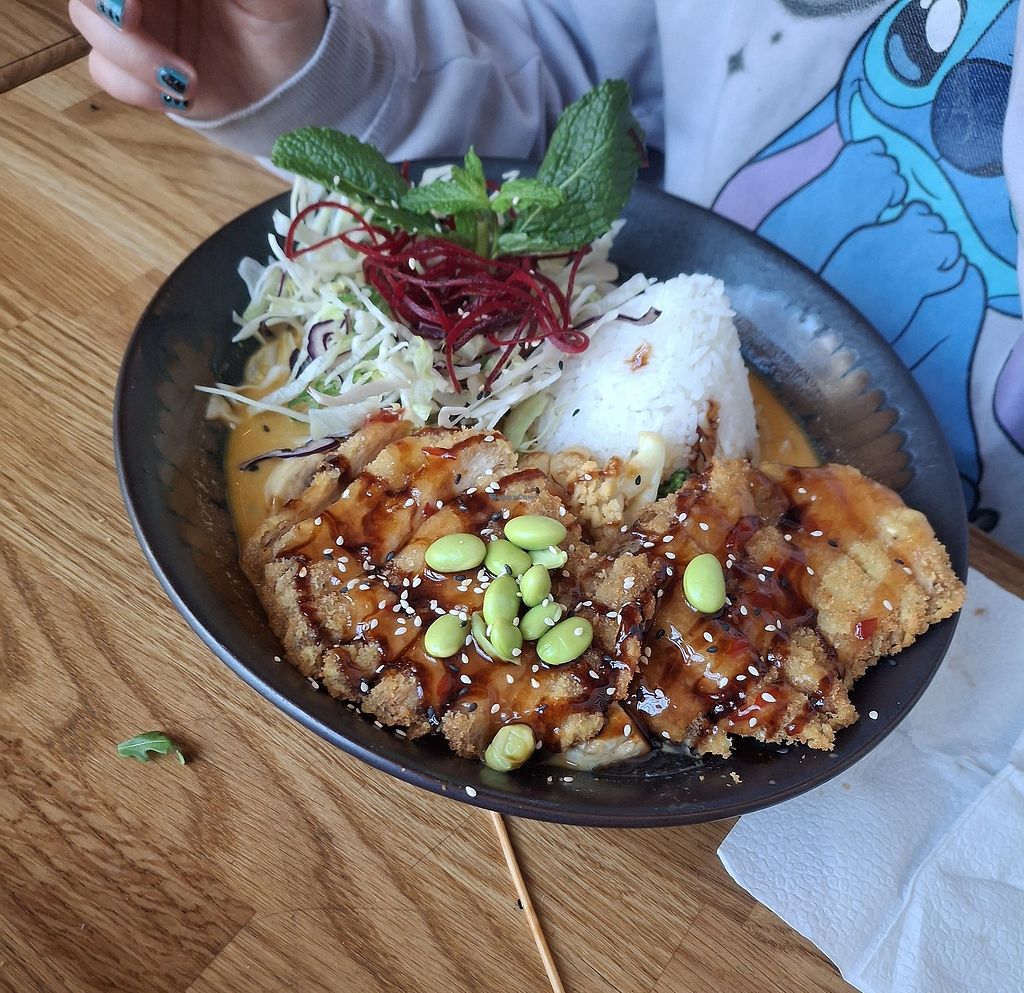 Read moreTrotz der Legende auf der Speisekarte, die besagt, dass es nicht 100% vegan ist, bestätigte ich mit dem Personal, dass es ganz vegan ist und die Speisekarte nicht mehr aktuell ist. Ich habe das Bun probiert und die Soße ist anders als das, was ich in der Vergangenheit gegessen habe - nicht schlecht. Die knusprigen Wantans waren großartig und mit einer guten Soße. Freundliches Personal und Sitzgelegenheiten im Freien war schön.