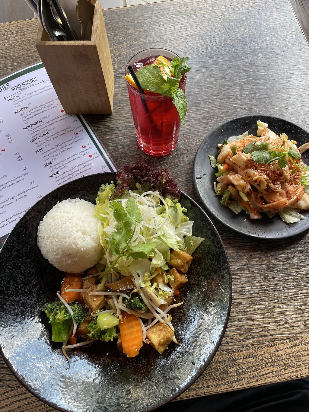 Despite being packed, the service was insanely fast. We enjoyed all the food, just giving 4/5 because my vegan meat strips were very dry. But we‘ll be back to try dessert and coffee!