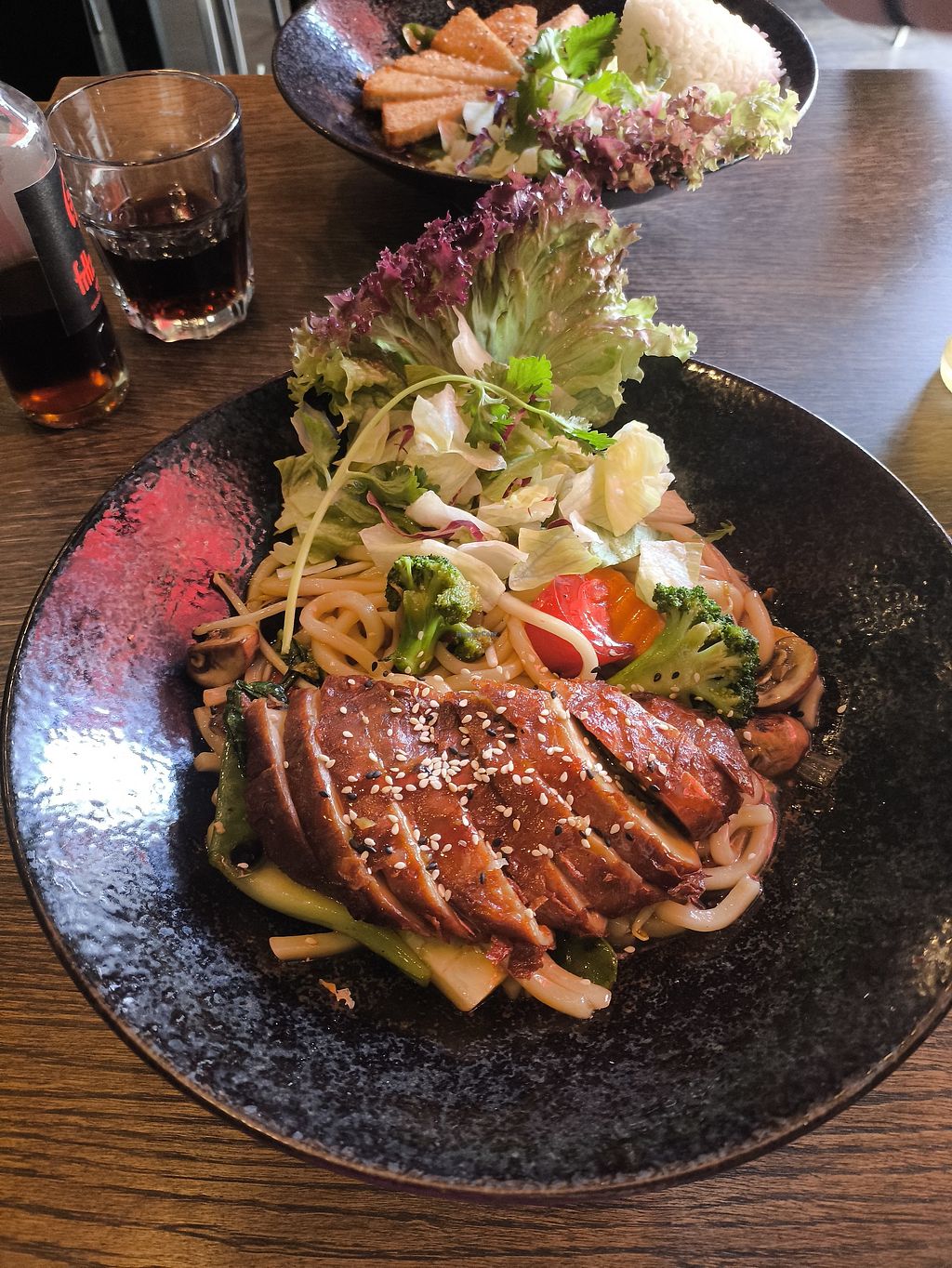 We ate the Udon Know Me dishes which were delicious. Perfect amount of sauce, crispy seitan duck, mushrooms, noodles and fresh vegetables. The portion size was also very good.