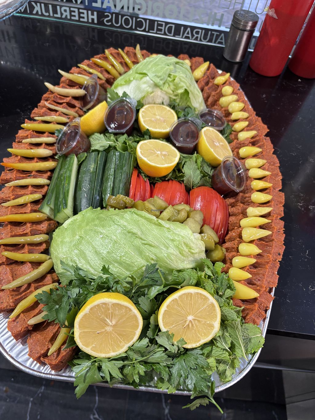 German based fast-food chain specializing in Turkish çiğköfte made of ground walnuts, bulgur, and spices mix and served in a sandwich/wrap or on a plate with salad. Also offers falafels, hotdogs, burgers, and baklava. Menu options vary for different locations but generally items are vegan except for hotdog, icli köfte, ayran drink, and a couple of the sauces. However some locations are reported to offer vegan hot dogs from 2024. Open Mon-Thu 12:00-23:00, Fri-Sat 12:00-01:00, Sun 13:00-22:00.