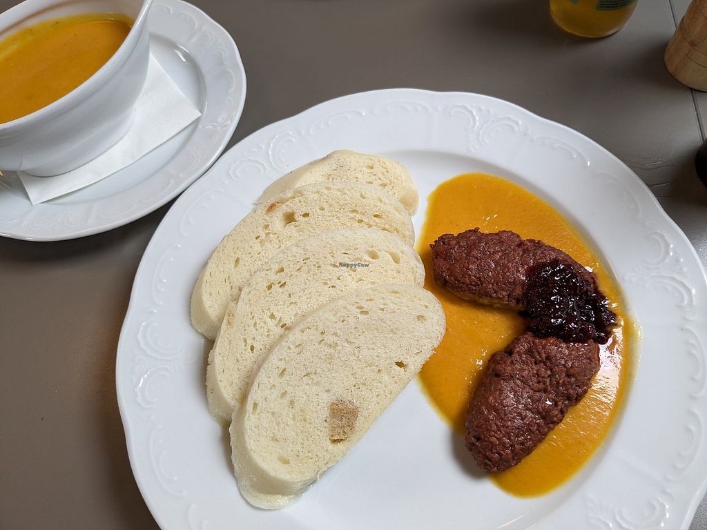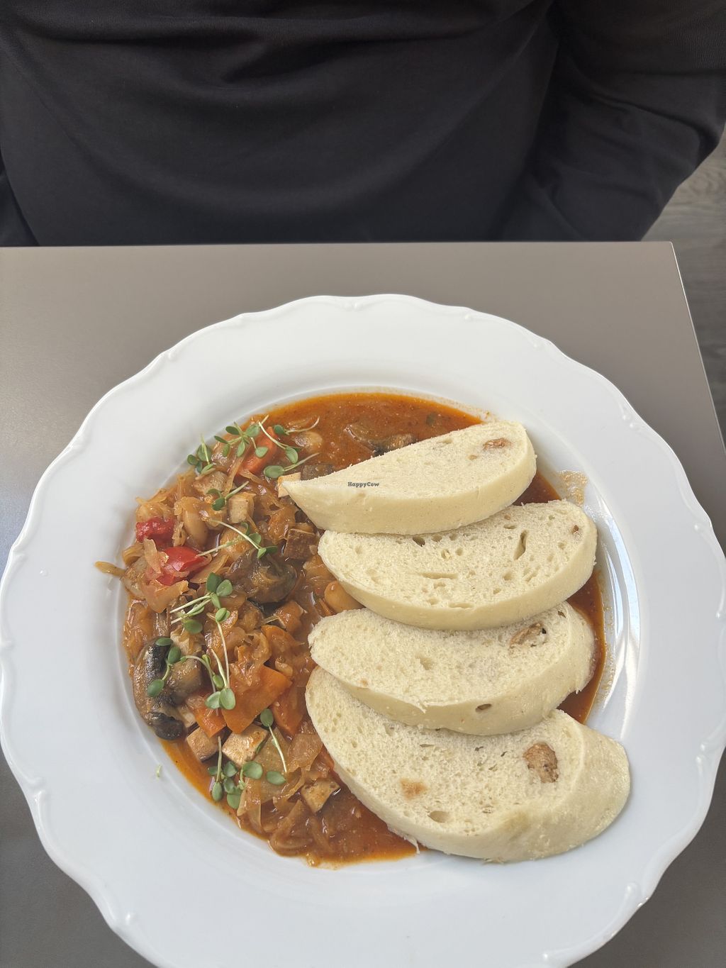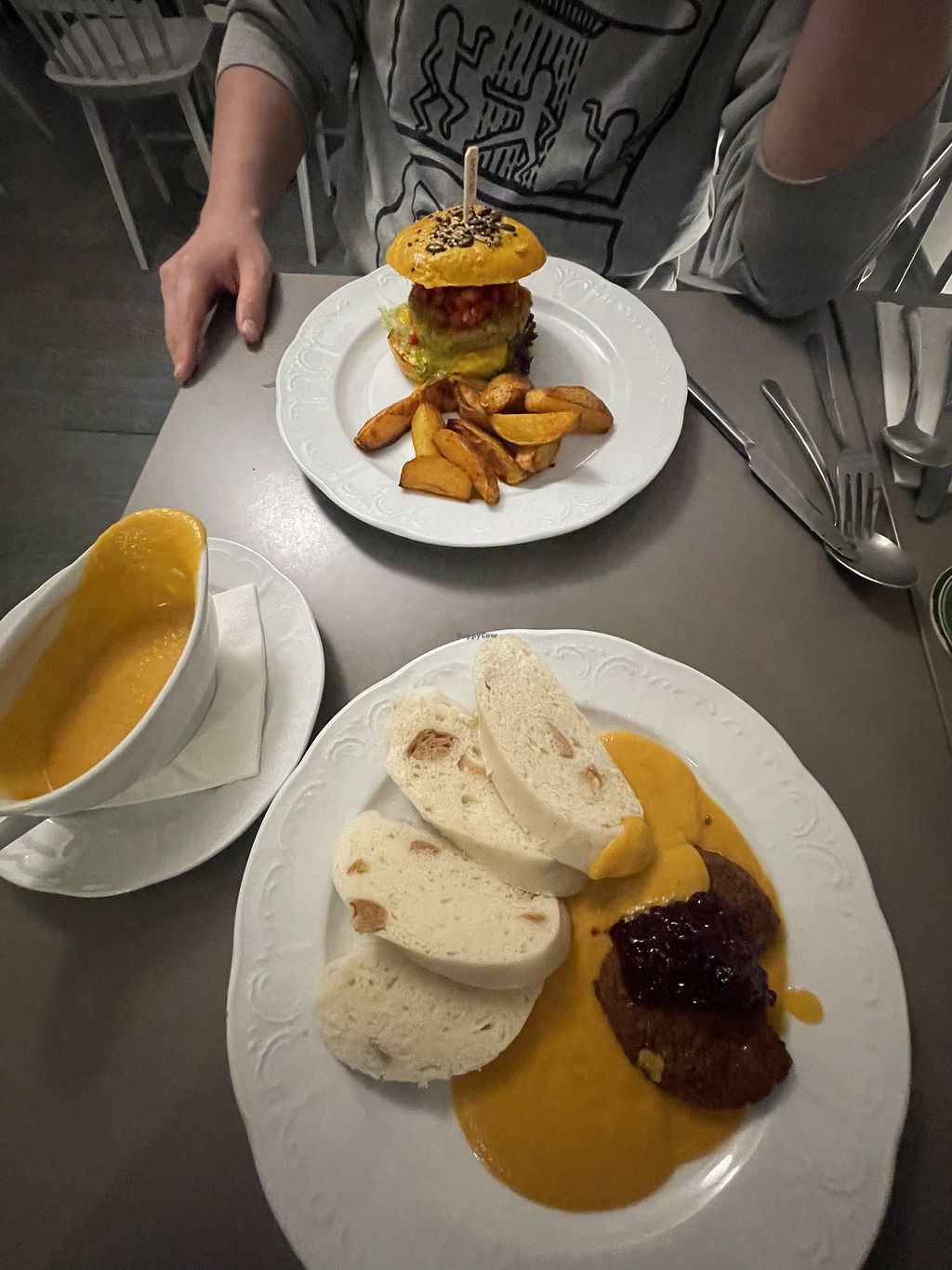 This is a lovely place, it’s really nice to be able to try traditional Czech food at a vegan place. The homemade lemonade was lovely too! We had the dish which I can’t pronounce, the beef and dumplings. Delicious!