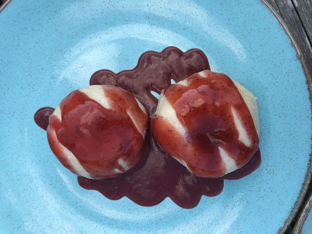 Dumplings with „meat“ and berries,'