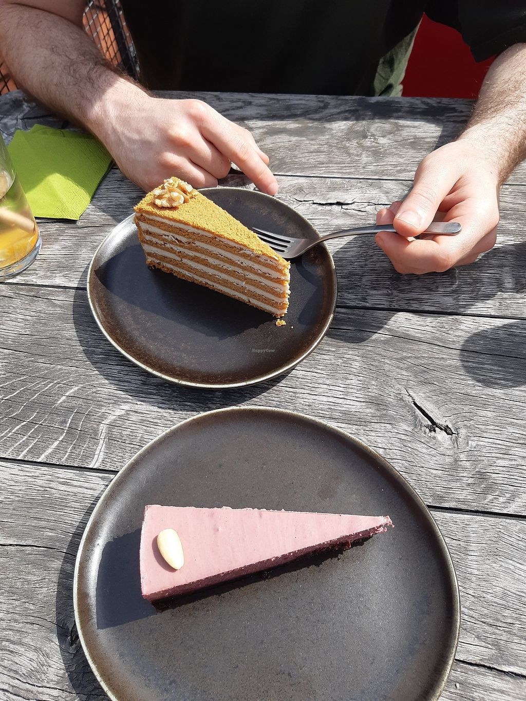 Honey cake and raw cherry cake