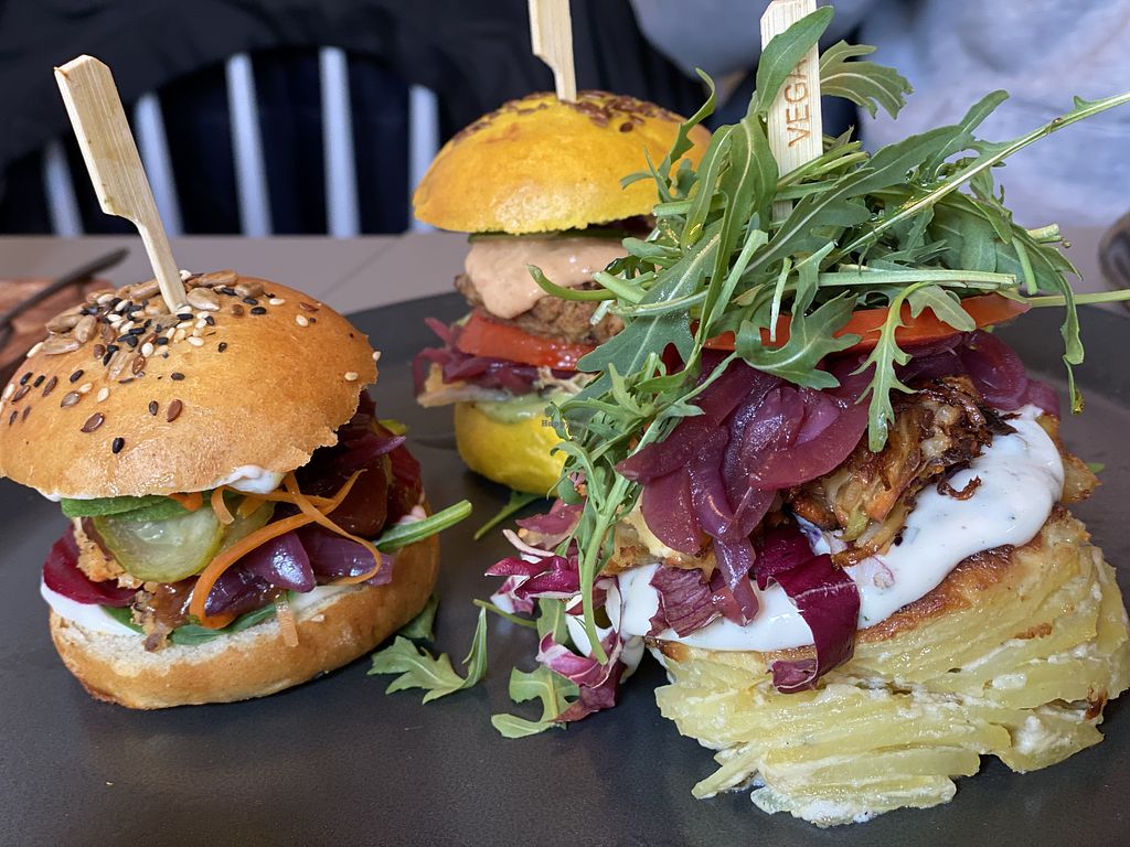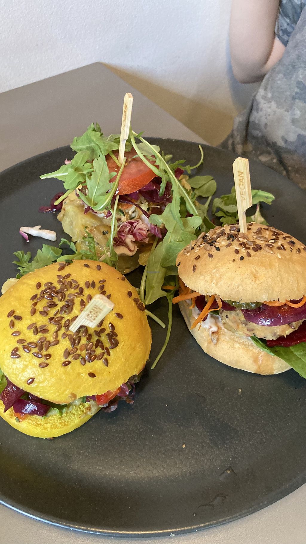 Homemade lemonade, selection of mini-burgers & zucchini lasagne 😋