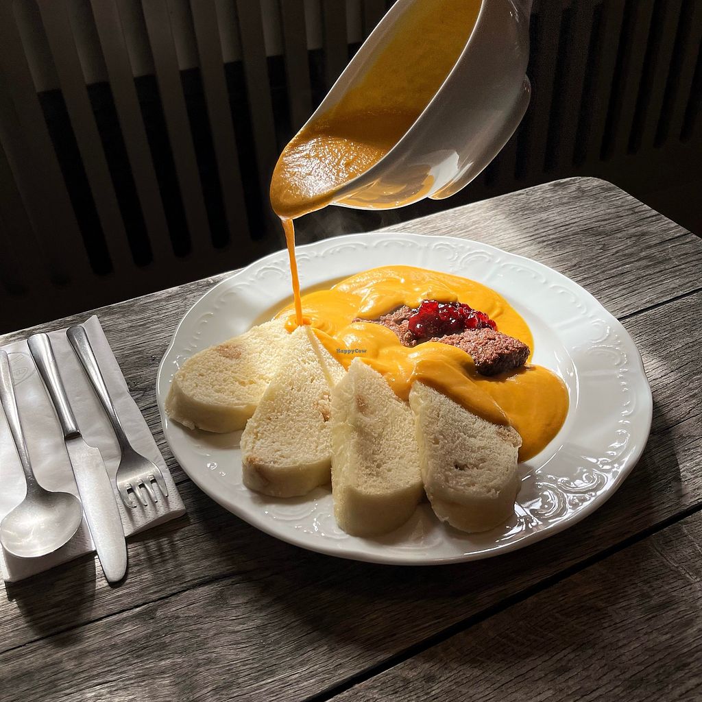 Svíčková sauce with no beef sirloin and bohemian dumplings