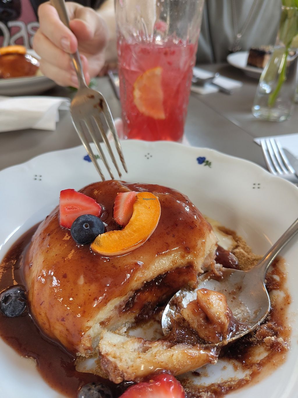 Soup and bruschetta. Passionfruit spritz and lemonade