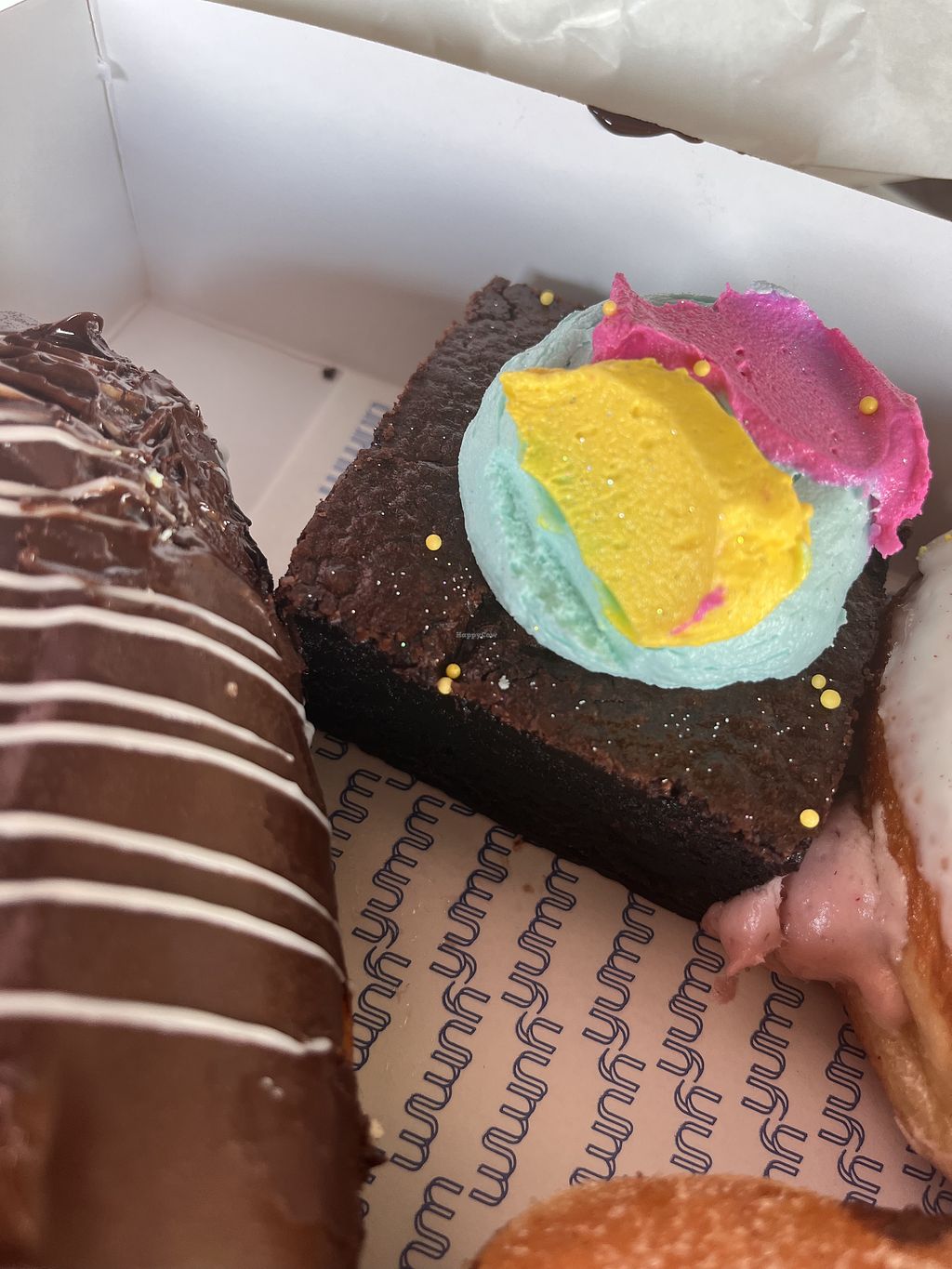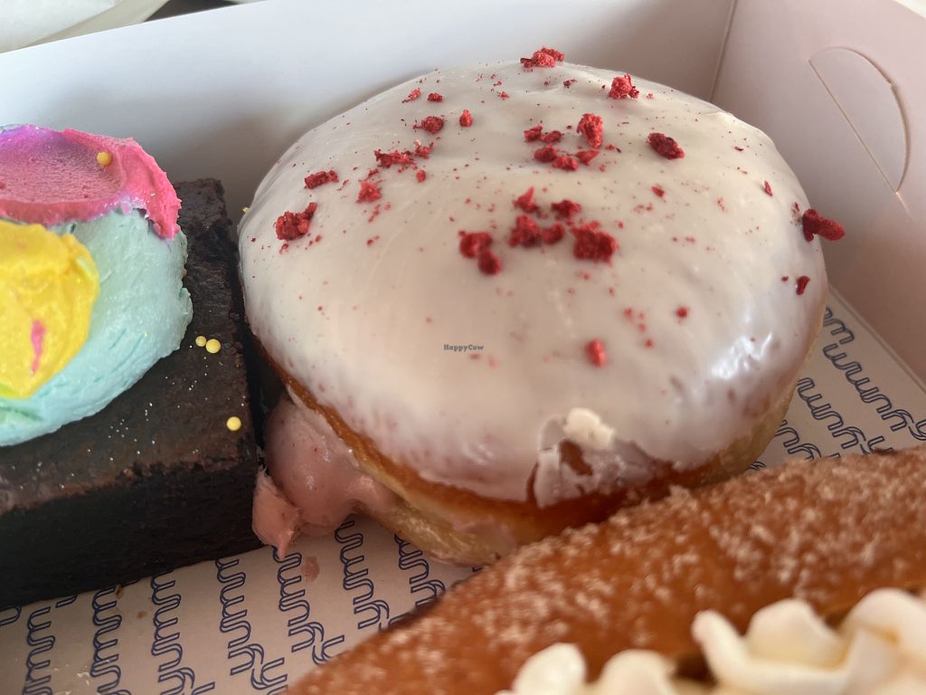 Vegan bakeshop offering a variety of sweet treats, desserts, and pastries (both sweet and savory), and savoury items like sandwiches. Has gluten-free options, plant milk is available for hot beverages, also has nicecream. Provides catering services and accepts orders for custom and special occasion cakes. Open Mon-Sun 8:00am-9:00pm.