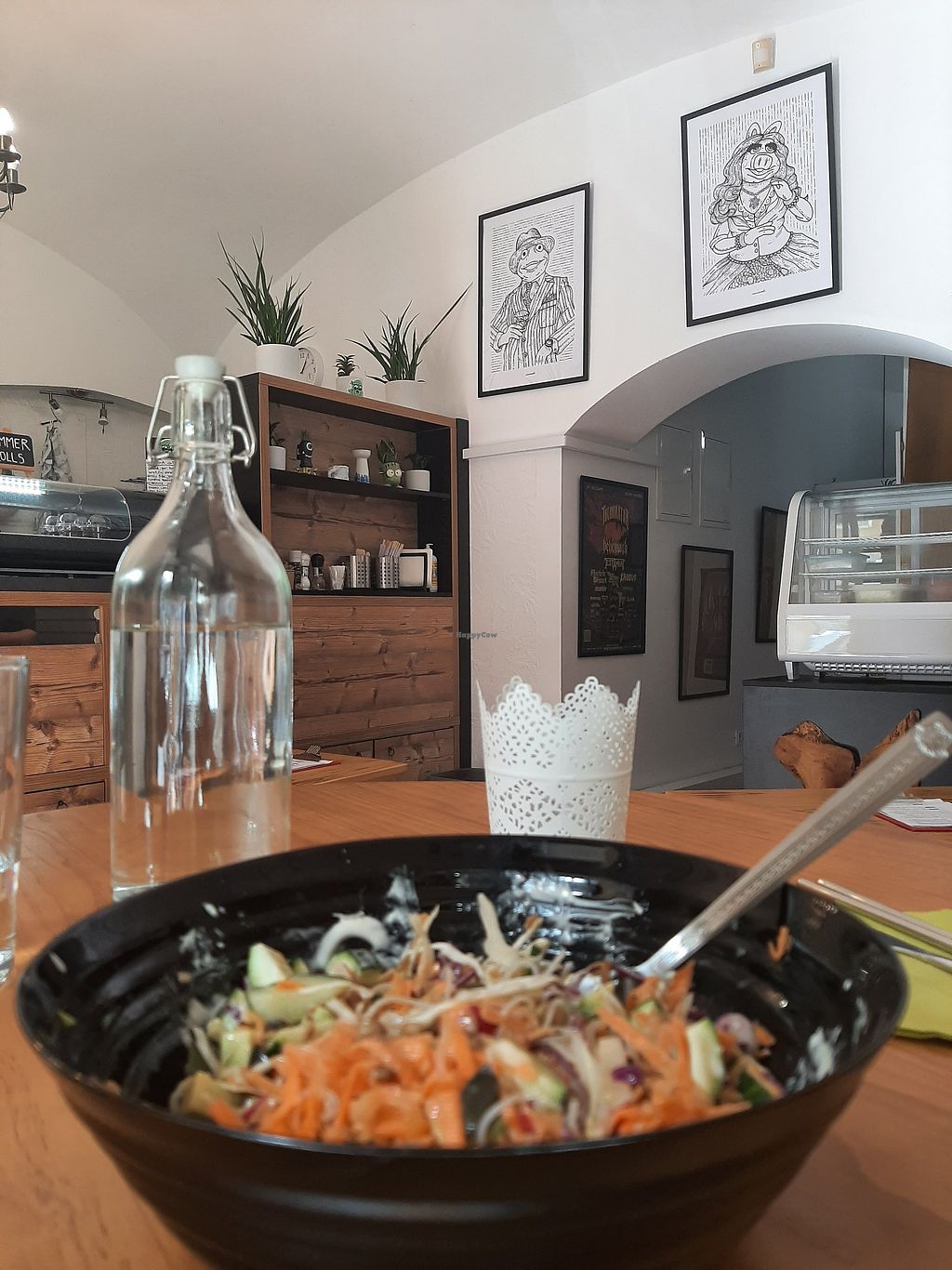 Small, simple vegan restaurant with a few tables (with chairs with no backrest), with even fewer tables outside (weather and temperature permitting). Quite wide 100% vegan menu on 2 1/2 pages is not 109% reliable, but then there are also additional daily dishes, so it's good to ask in advance. Staff is very welcoming, kind, friendly and attentive, service is fast. Definitely recommended and wirth coming again.