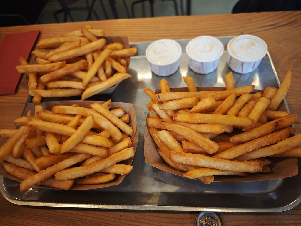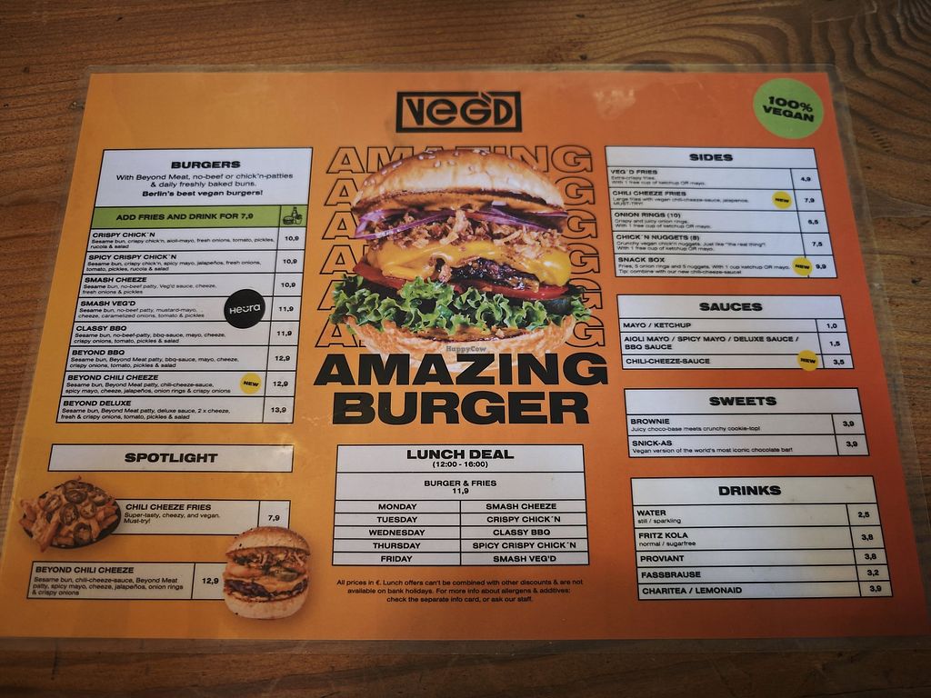 Incredible tasty burger and fries. Completely vegan menu with beyond meat, 'chicken' or no beef burger. Fries with different toppings, like chilli cheese, BBQ or classic ketchup/mayonaise.